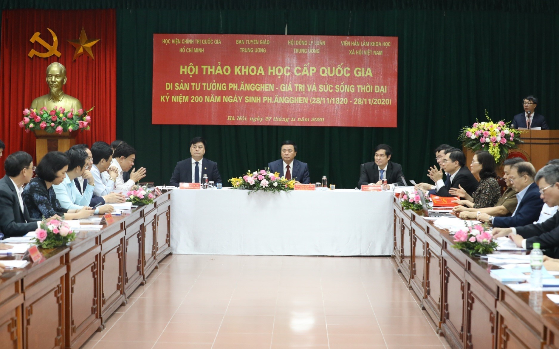Hội thảo khoa học quốc gia: “Di sản tư tưởng Ph.Ăngghen: Giá trị và sức sống thời đại” tổ chức nhân kỷ niệm 200 năm Ngày sinh Ph. Ăngghen (1820 - 2020) diễn ra tại Học viện Chính trị quốc gia Hồ Chí Minh _Ảnh: TTXVN