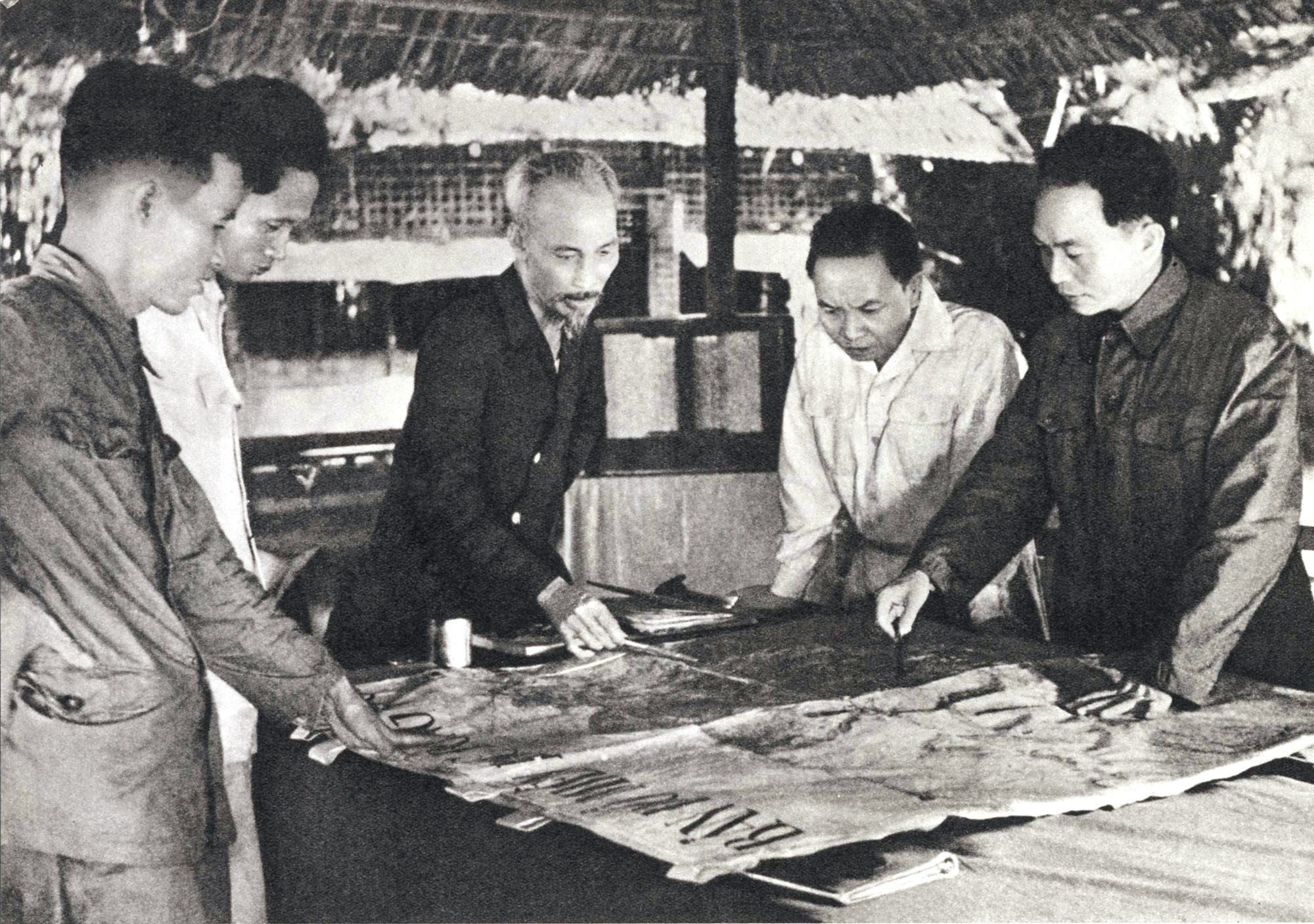 Cuối năm 1953, tại Việt Bắc, Chủ tịch Hồ Chí Minh và các đồng chí lãnh đạo Đảng quyết định mở Chiến dịch Điện Biên Phủ _Nguồn: Tư liệu TTXVN
