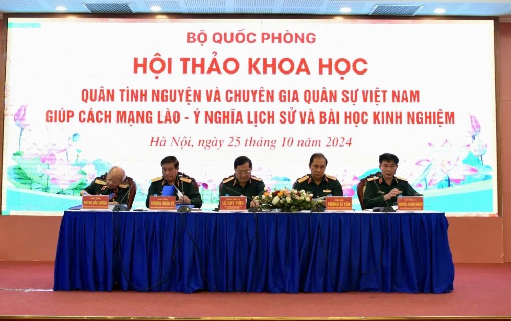 Phát biểu khai mạc hội thảo, Thượng tướng, TS Lê Huy Vịnh, Uỷ viên Trung ương Đảng, Ủy viên Quân ủy Trung ương, Thứ trưởng Bộ Quốc phòng cho biết, cách đây 75 năm, ngày 30-10-1949, Ban Thường vụ Trung ương Đảng Cộng sản Đông Dương quyết định: Các lực lượng quân đội Việt Nam hoạt động ở Lào tổ chức theo hệ thống riêng của Quân đội Việt Nam và mang danh nghĩa là Quân tình nguyện. Dưới sự lãnh đạo sáng suốt của Trung ương Đảng, đứng đầu là Chủ tịch Hồ Chí Minh, thấm nhuần tư tưởng “giúp nhân dân nước bạn tức là mình tự giúp mình”, phát huy truyền thống của quân đội cách mạng, chủ nghĩa yêu nước chân chính và tinh thần quốc tế vô sản trong sáng, Quân tình nguyện và Chuyên gia quân sự Việt Nam đã “kề vai sát cánh”, “chung lưng đấu cật”, cùng với toàn Đảng, toàn quân và toàn dân nước bạn Lào chiến đấu anh dũng, giành thắng lợi vẻ vang trong sự nghiệp giải phóng dân tộc, xây dựng và bảo vệ vững chắc nước Cộng hòa Dân chủ Nhân dân Lào. Những cống hiến, hy sinh to lớn của Quân tình nguyện và Chuyên gia quân sự Việt Nam trực tiếp củng cố và xây đắp nên truyền thống đoàn kết chiến đấu đặc biệt Việt Nam - Lào, Lào - Việt Nam - một biểu tượng đoàn kết quốc tế vô sản, mẫu mực có một không hai trong lịch sử quan hệ quốc tế.