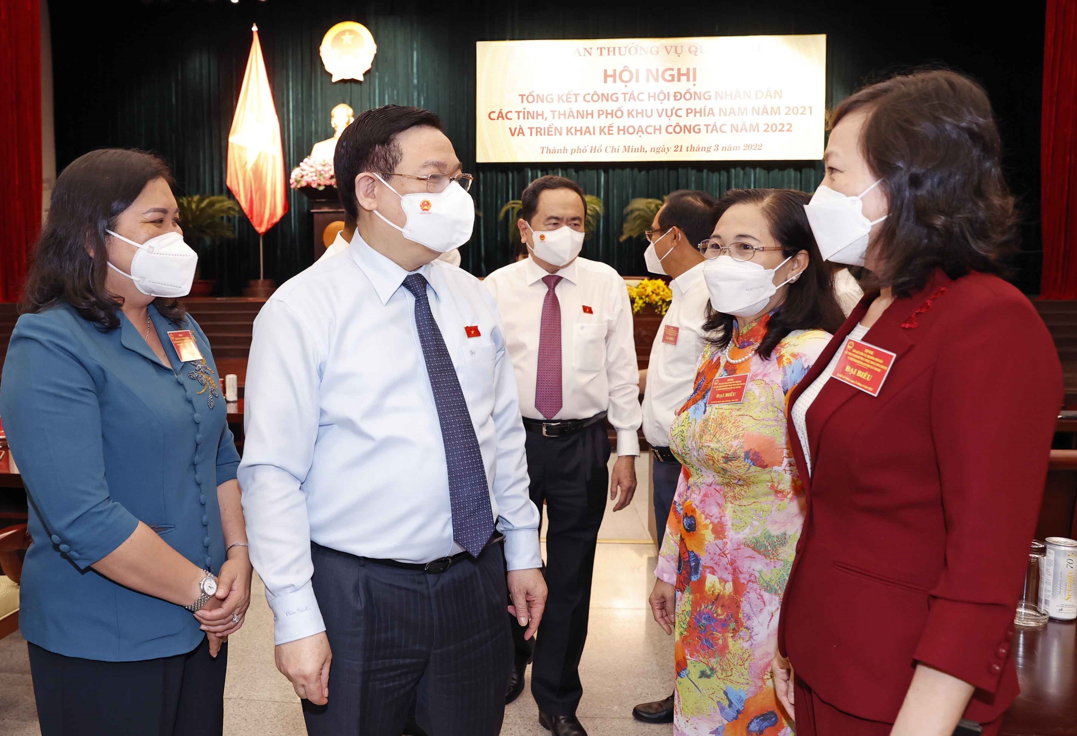 Ủy viên Bộ Chính trị, Chủ tịch Quốc hội Vương Đình Huệ chủ trì Hội nghị tổng kết công tác hội đồng nhân dân các tỉnh, thành phố khu vực phía Nam năm 2021 và triển khai kế hoạch công tác năm 2022 _Ảnh: TTXVN