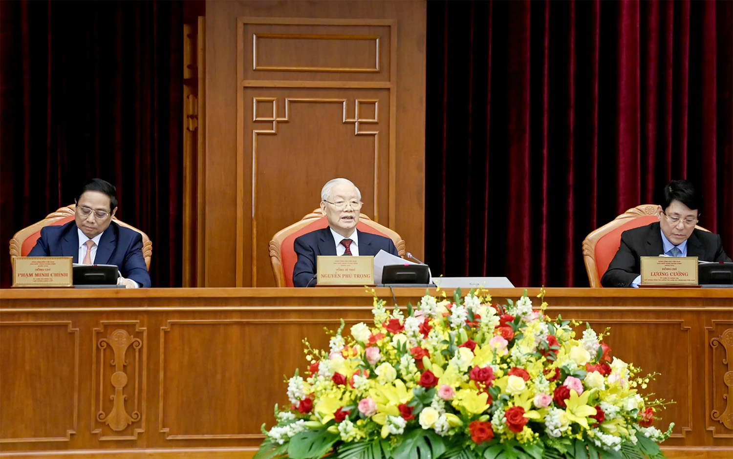 Tổng Bí thư Nguyễn Phú Trọng dự và phát biểu tại phiên bế mạc Hội nghị lần thứ chín Ban Chấp hành Trung ương Đảng khóa XIII _Nguồn: nhandan.vn