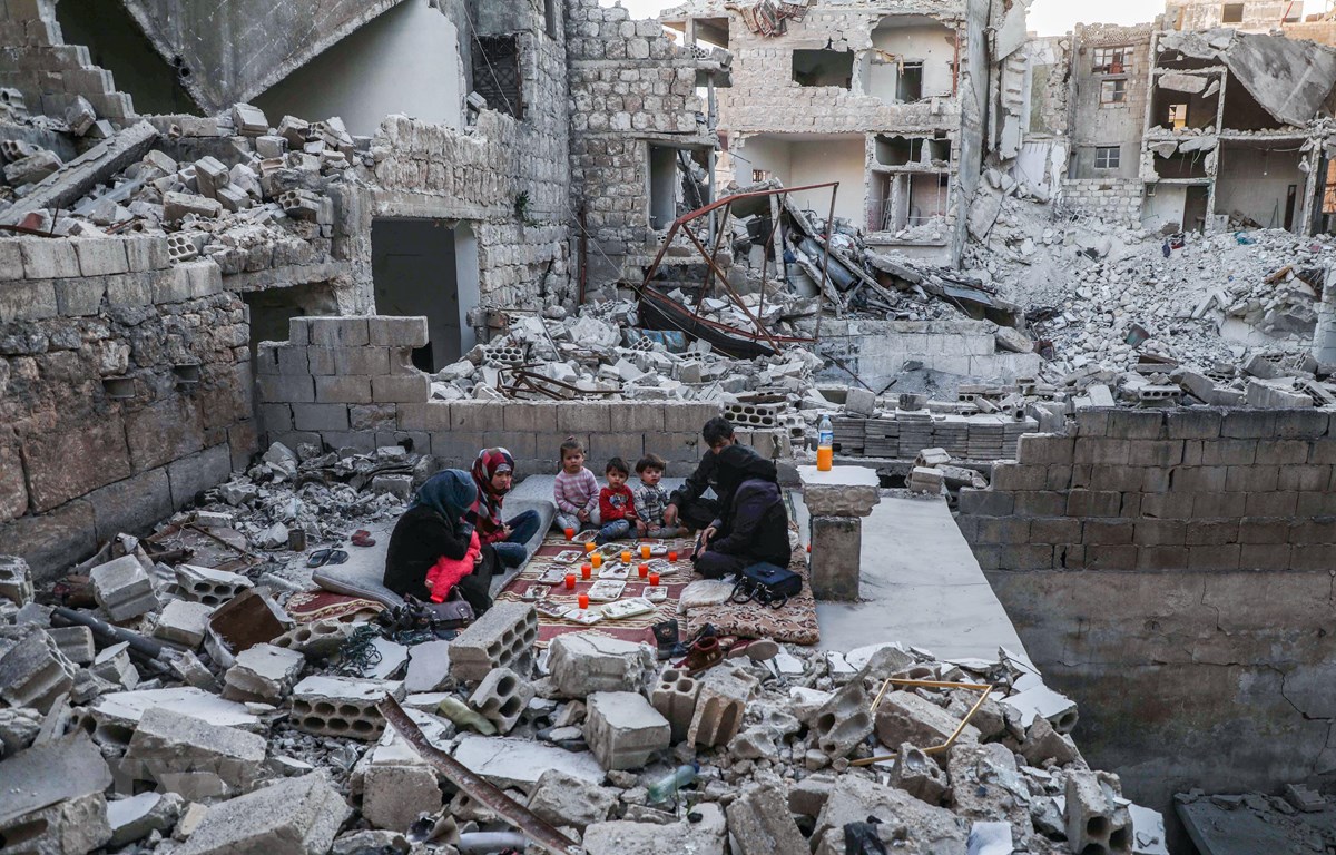 Quang rảnh đổ nát sau các cuộc giao tranh tại Syria _Ảnh: AFP/TTXVN