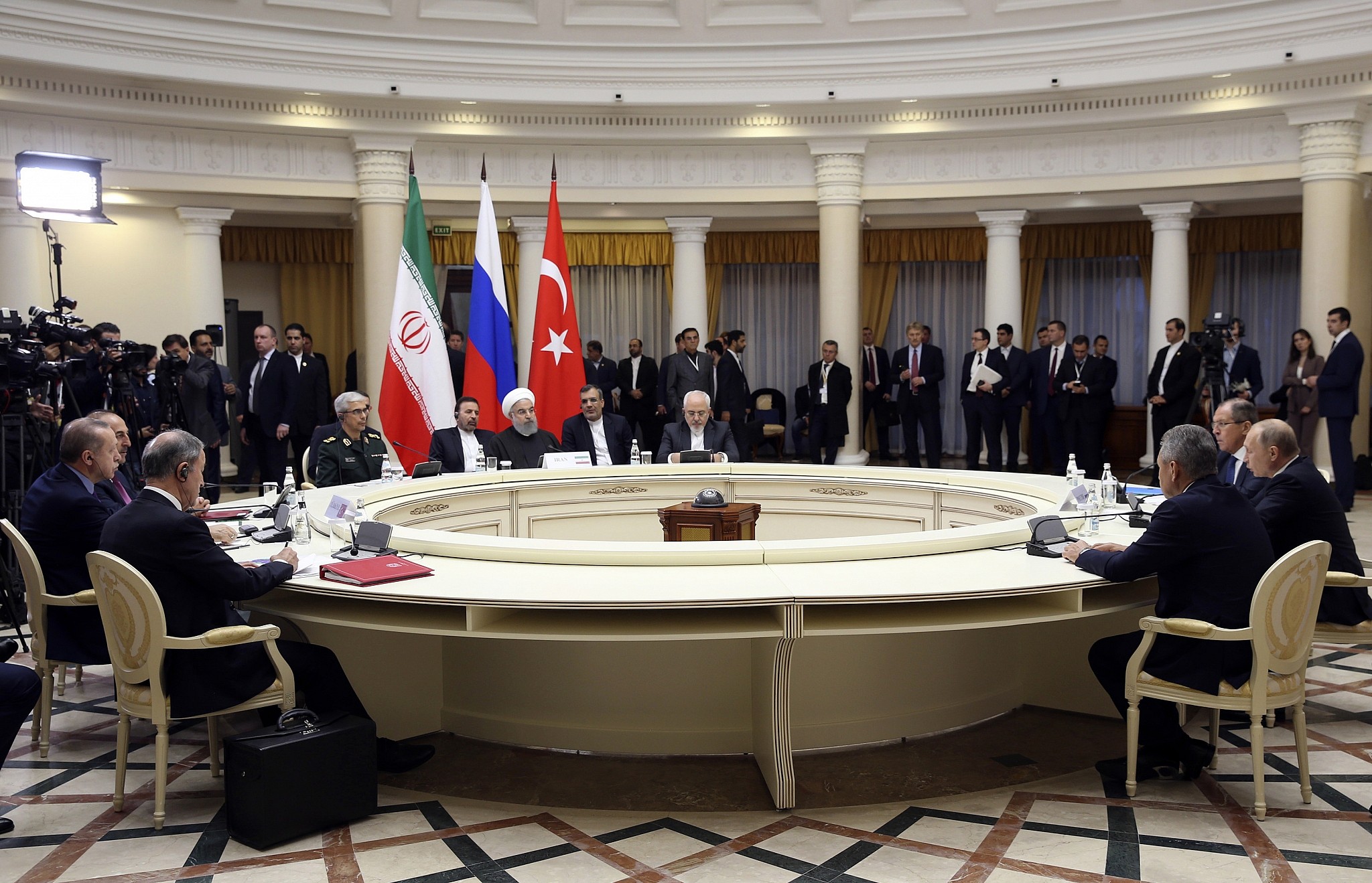 Hội nghị thượng đỉnh ba bên do Tổng thống Nga V. Putin chủ trì tại Sochi (Nga) nhằm thảo luận tương lai của Syria với Tổng thống Thổ Nhĩ Kỳ Tayyip Erdogan và Tổng thống Iran Hassan Rouhani, tháng 2-2019 _Ảnh: AFP/TTXVN