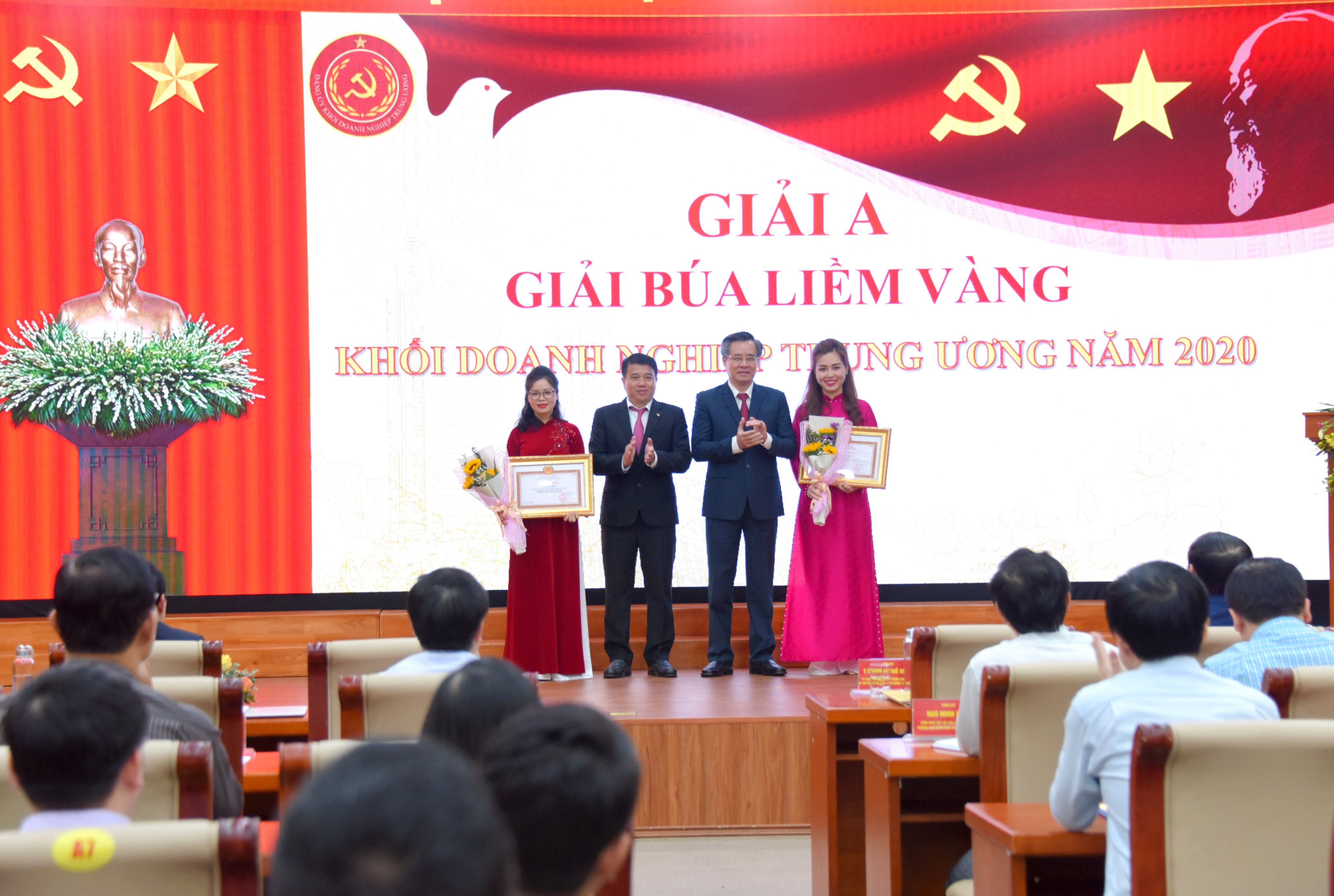Giải Búa Liềm vàng Khối Doanh nghiệp Trung ương năm 2020 được phát động từ tháng 5-2020, nhận được 622 tác phẩm từ 33 đảng ủy trực thuộc. Các tác phẩm tham dự giải đa dạng về thể loại, hình thức, phong phú: chính luận, nghiên cứu - trao đổi, phản ánh, người tốt việc tốt, phỏng vấn, ý kiến đảng viên, ghi chép, ký sự, truyền hình. Đề tài, nội dung các tác phẩm bám sát những vấn đề thời sự, phản ánh sinh động thực tiễn công tác xây dựng Đảng, sản xuất, kinh doanh tại các tập đoàn, tổng công ty, ngân hàng, đơn vị trong Đảng bộ Khối. Nhiều tác phẩm đề cập đến những vấn đề được dư luận xã hội quan tâm, là các nhiệm vụ chính trị quan trọng của Đảng bộ Khối trong năm 2020 như: Công tác phòng, chống đại dịch COVID-19; tuyên truyền đại hội đảng bộ các cấp và Đại hội Đảng bộ Khối Doanh nghiệp Trung ương lần thứ III, nhiệm kỳ 2020 - 2025; khắc phục hậu quả thiên tai, bão lũ; đấu tranh, ngăn chặn, đẩy lùi sự suy thoái về tư tưởng chính trị, đạo đức, lối sống, những biểu hiện “tự diễn biến”, “tự chuyển hóa” trong nội bộ; phản ánh về tình hình và kết quả triển khai thực hiện Nghị quyết Đại hội XII của Đảng và các nghị quyết của Trung ương khóa XII; đấu tranh chống các quan điểm sai trái trên internet và mạng xã hội; niềm tin của cán bộ, đảng viên và người lao động đối với Đảng; gương người tốt việc tốt; ứng dụng khoa học - công nghệ vào thực hiện nhiệm vụ chính trị; bảo vệ môi trường; công tác an sinh xã hội nơi biên giới, hải đảo… Tại buổi lễ, Đảng ủy Khối đã trao 2 Giải A, 3 Giải B, 5 Giải C và 10 Giải Khuyến khích cho các tác giả, nhóm tác giả có tác phẩm đạt Giải Búa liềm vàng Khối Doanh nghiệp Trung ương năm 2020; đồng thời khen thưởng 6 đảng ủy trực thuộc có thành tích xuất sắc trong hưởng ứng và tham gia Giải Búa liềm vàng Khối Doanh nghiệp Trung ương năm 2020.