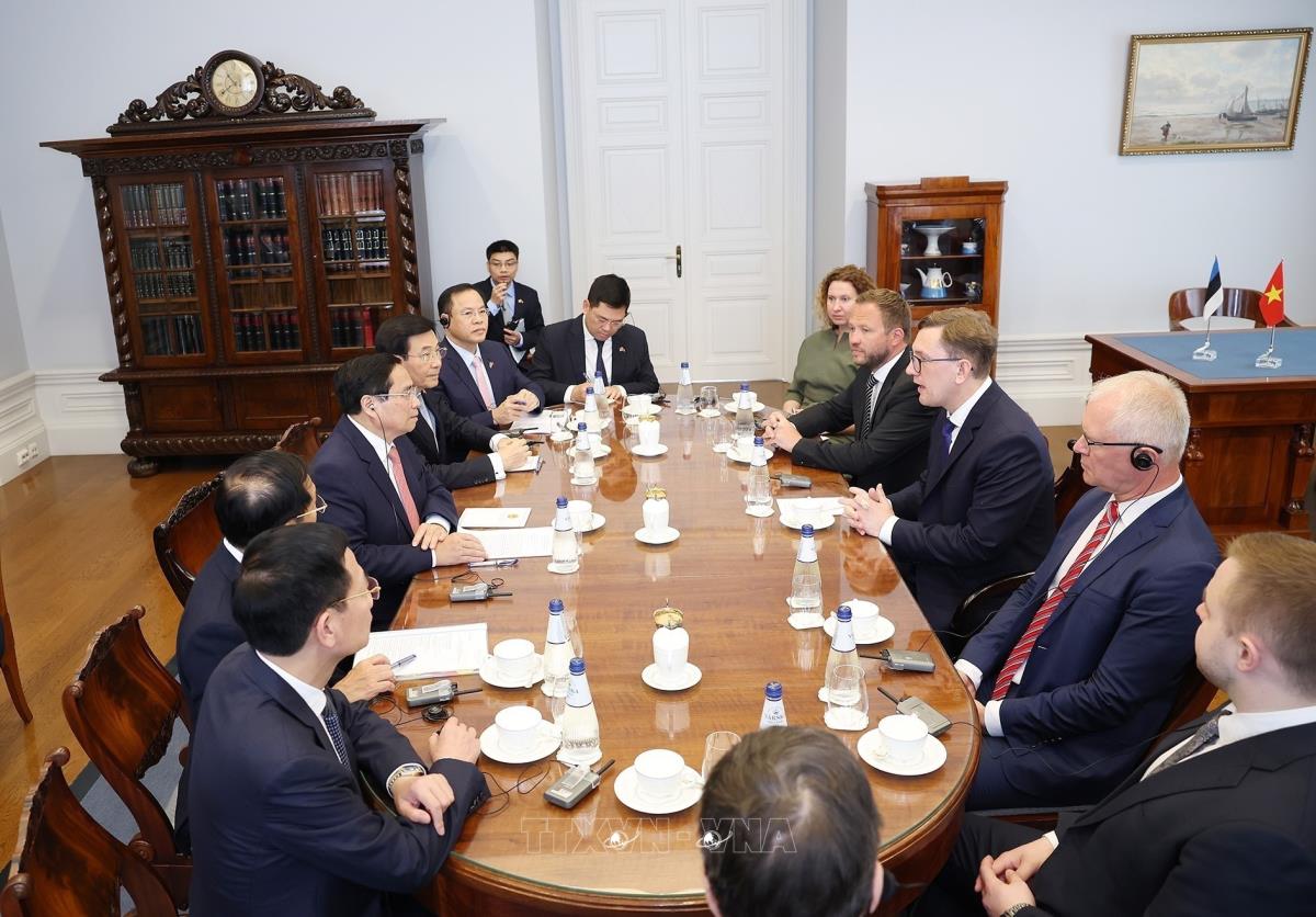 Thủ tướng Chính phủ Phạm Minh Chính bày tỏ vui mừng đến thăm đất nước Estonia tươi đẹp, giàu lòng mến khách; cảm ơn sự tiếp đón trọng thị, chân tình của Estonia và chuyển lời thăm hỏi của Tổng Bí thư Tô Lâm, Chủ tịch nước Lương Cường, Chủ tịch Quốc hội Trần Thanh Mẫn tới Chủ tịch Quốc hội Estonia. Bày tỏ vui mừng trước sự phát triển tích cực của quan hệ song phương thời gian qua, Thủ tướng Chính phủ Phạm Minh Chính tin tưởng rằng, chuyến thăm sẽ góp phần tạo bước đột phá, mở ra một giai đoạn phát triển mới của quan hệ hợp tác truyền thống tốt đẹp, tương xứng với tiềm năng và hợp tác giữa hai nước.