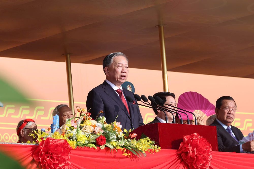 Tiếp đó, đọc diễn văn Kỷ niệm 80 năm Cách mạng tháng Tám thành công và Quốc khánh nước Cộng hòa xã hội chủ nghĩa Việt Nam, Tổng Bí thư Tô Lâm nêu rõ, tám mươi năm trước, trên Quảng trường Ba Đình lịch sử, Chủ tịch Hồ Chí Minh kính yêu trịnh trọng đọc Tuyên ngôn Độc lập, khai sinh nước Việt Nam Dân chủ Cộng hòa, nay là nước Cộng hòa xã hội chủ nghĩa Việt Nam, nhà nước Dân chủ Nhân dân đầu tiên ở Đông Nam Á, mở ra kỷ nguyên độc lập, tự do cho đất nước. Từ thời khắc lịch sử ấy, dân tộc Việt Nam bước vào hành trình mới: xây dựng chính quyền nhân dân, bảo vệ Tổ quốc, đưa đất nước vững vàng tiến lên con đường xã hội chủ nghĩa, vì mục tiêu “dân giàu, nước mạnh, dân chủ, công bằng, văn minh”.