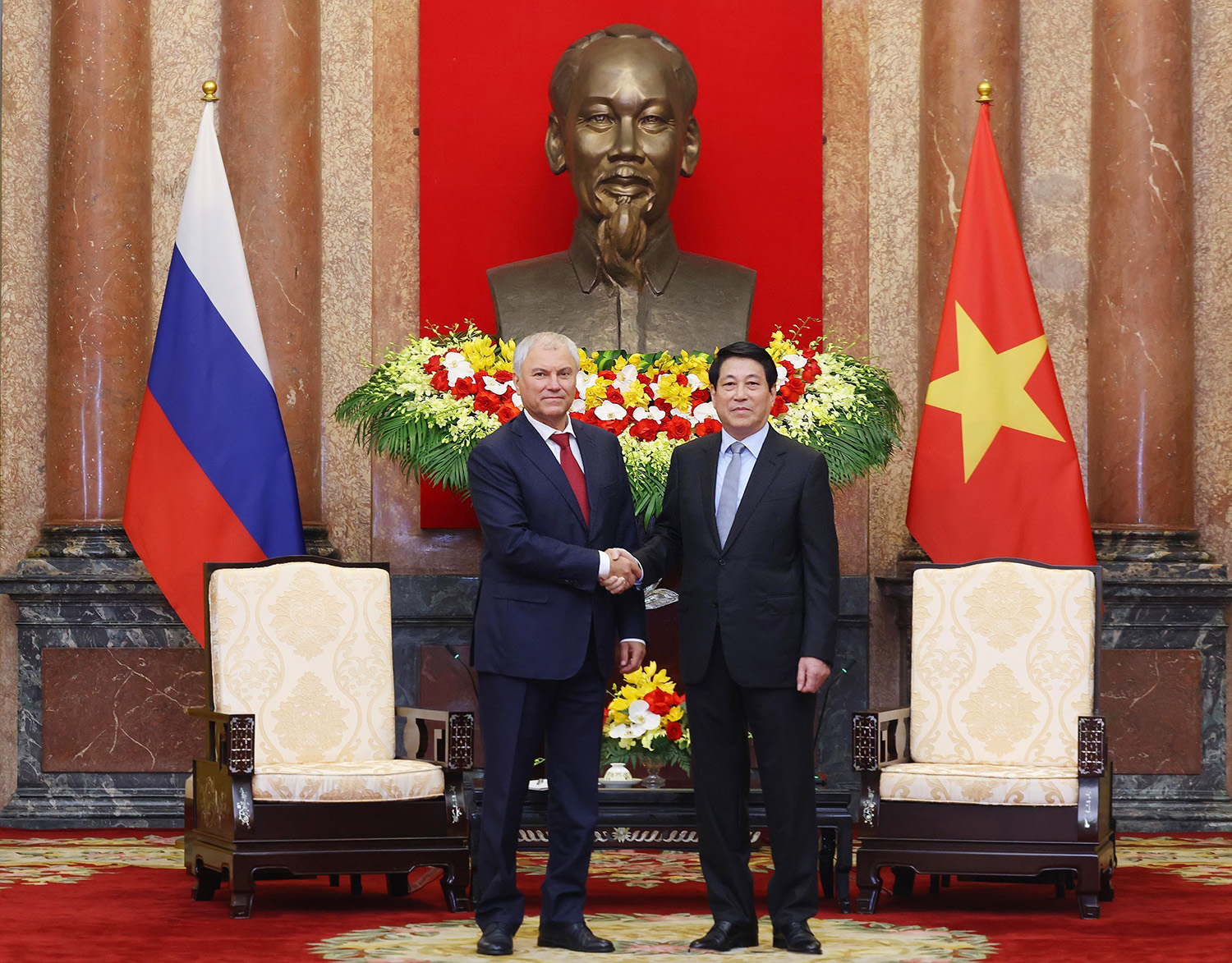 Chủ tịch nước chúc mừng những thành tựu mà Liên bang Nga đạt được dưới sự lãnh đạo của Tổng thống Putin và đánh giá cao vai trò của Duma Quốc gia trong xây dựng pháp luật, góp phần vào sự ổn định và phát triển bền vững của Nga. Chủ tịch nước đề nghị Chủ tịch Duma Quốc gia Quốc hội Nga cùng Quốc hội Việt Nam ủng hộ và thúc đẩy triển khai những thoả thuận đạt được giữa lãnh đạo cấp cao hai nước, đặc biệt là giữa Tổng Bí thư Tô Lâm và Tổng thống Putin (tháng 5-2025) và giữa Chủ tịch nước và Tổng thống Putin ngày 3-9-2025 vừa qua, cũng như đôn đốc, tạo khuôn khổ pháp lý thuận lợi tháo gỡ các khó khăn, vướng mắc, đưa quan hệ Việt Nam - Nga lên tầm cao mới, thực chất và hiệu quả trên mọi lĩnh vực.