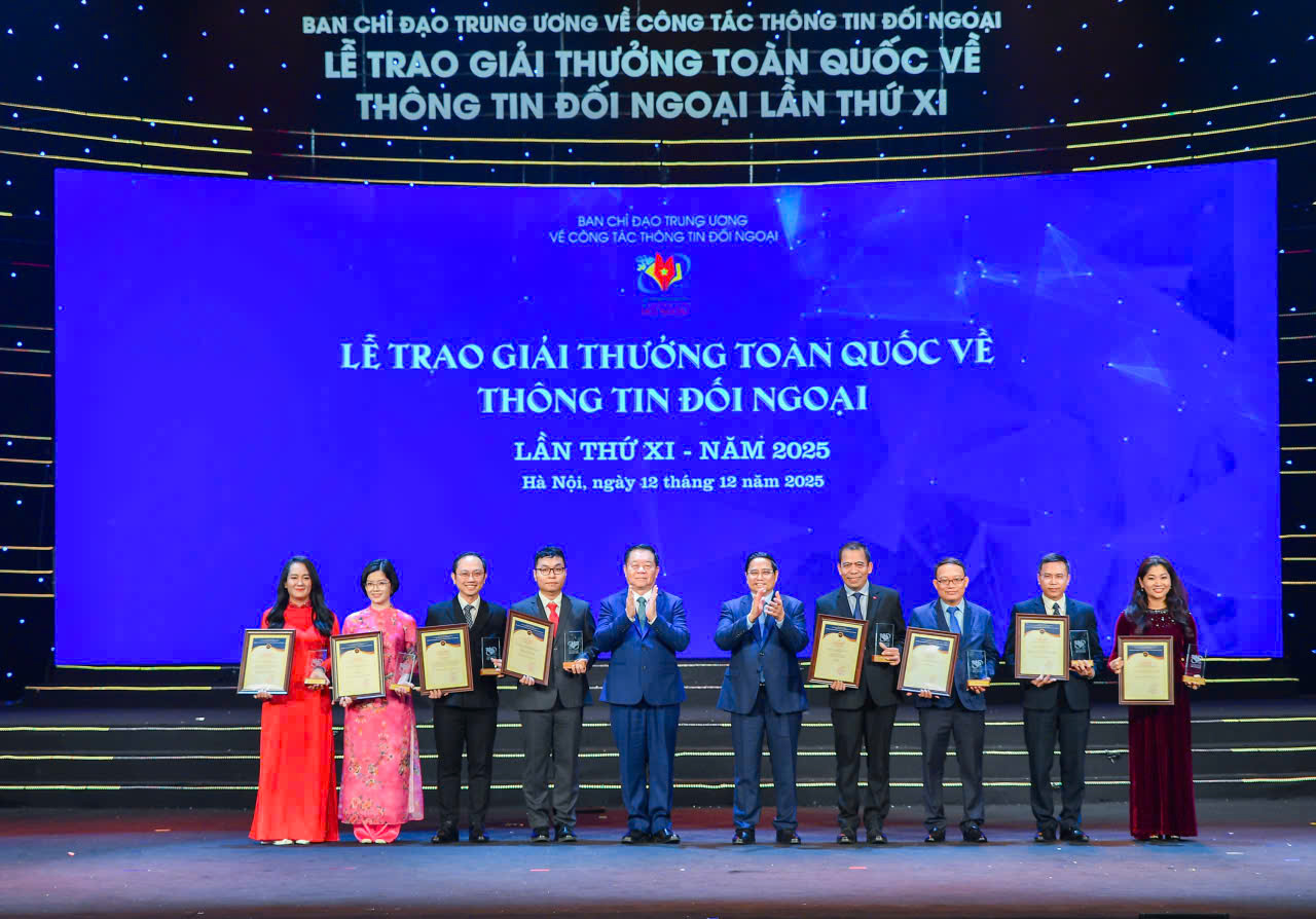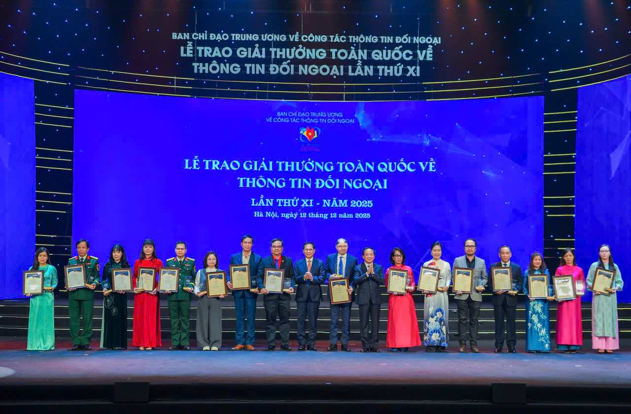 TCCS - Ngày 12-12-2025, tại Hà Nội, Ban Chỉ đạo Trung ương về công tác thông tin đối ngoại, Ban Tuyên giáo và Dân vận Trung ương chủ trì, phối hợp với Đài Truyền hình Việt Nam cùng các ban, bộ, ngành liên quan tổ chức Lễ trao Giải thưởng toàn quốc về thông tin đối ngoại lần thứ XI. Giải thưởng toàn quốc về thông tin đối ngoại lần thứ XI ghi nhận nhiều sản phẩm thông tin có chiều sâu, giàu sức thuyết phục và thể hiện rõ nét tinh thần sáng tạo; tiếp tục khẳng định uy tín và vị thế của một giải thưởng lớn trong lĩnh vực thông tin đối ngoại, thu hút sự tham gia rộng rãi của các cơ quan, tổ chức, cá nhân trong và ngoài nước.