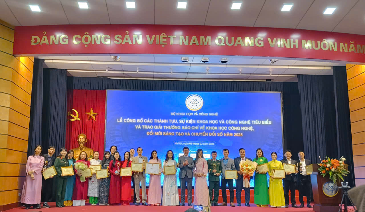 TCCS - Ngày 6-2-2026, tại Hà Nội, Bộ Khoa học và Công nghệ tổ chức Lễ công bố các thành tựu, sự kiện khoa học công nghệ tiêu biểu và trao Giải thưởng Báo chí về khoa học công nghệ, đổi mới sáng...