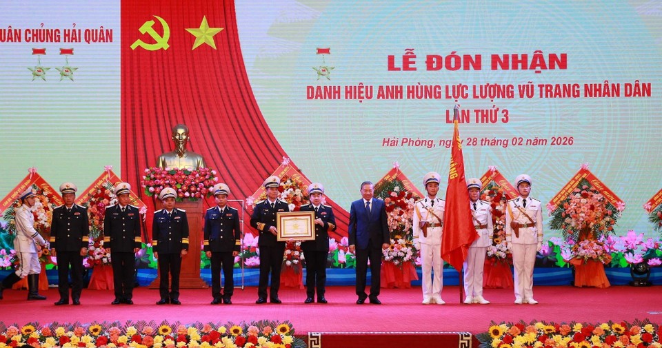 TCSS - Ngày 28-2-2025, tại thành phố Hải Phòng, Quân chủng Hải quân (Bộ Quốc phòng) tổ chức Lễ đón nhận danh hiệu Anh hùng Lực lượng vũ trang nhân dân lần thứ ba. Tổng Bí thư Tô Lâm, Bí thư Quân...