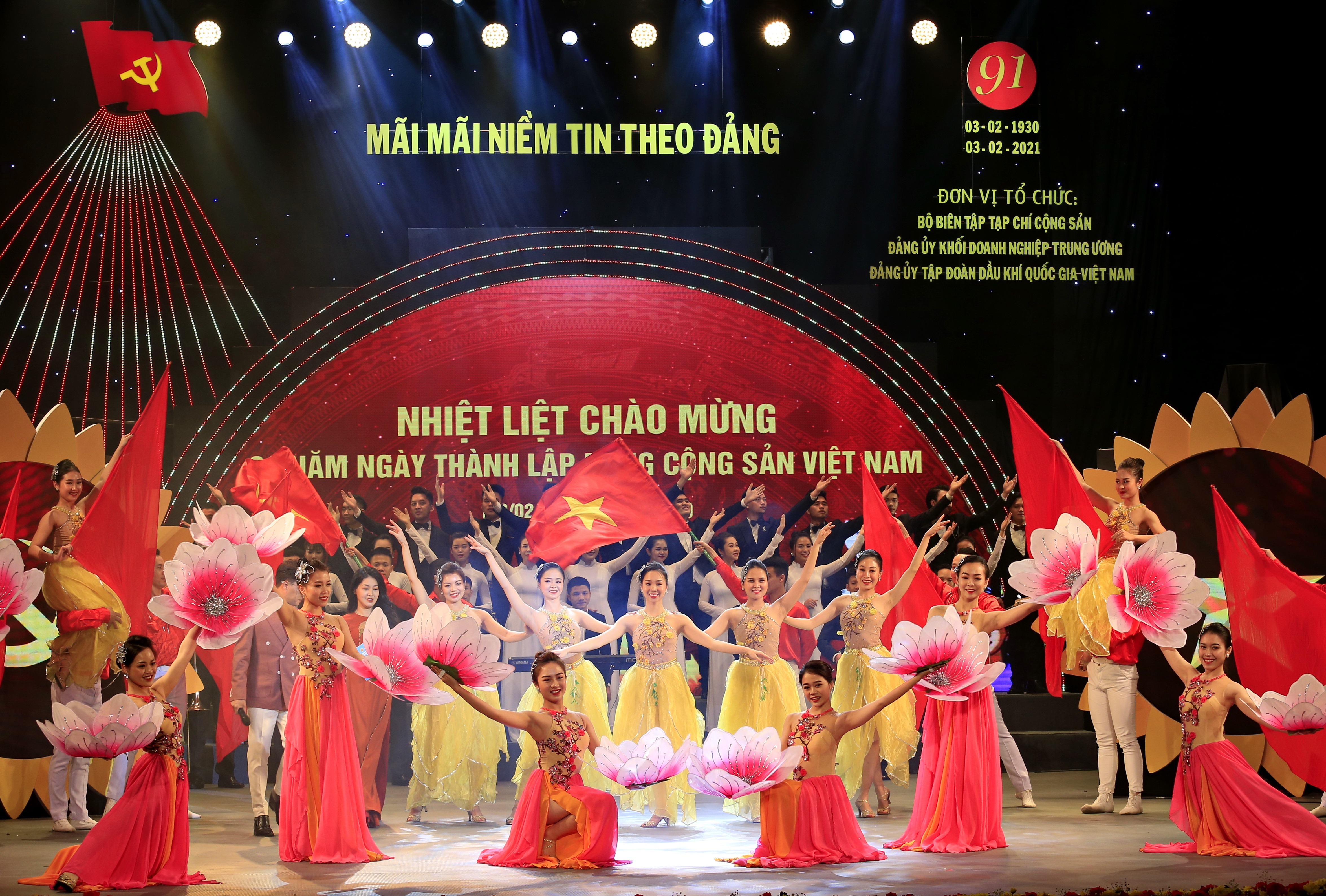 TCCS - Tối ngày 3-2-2021, tại Nhà hát Lớn Hà Nội, chương trình giao lưu nghệ thuật "Mãi mãi niềm tin theo Đảng" đã diễn ra và được truyền hình trực tiếp trên kênh VTV2, Đài Truyền hình Việt Nam.