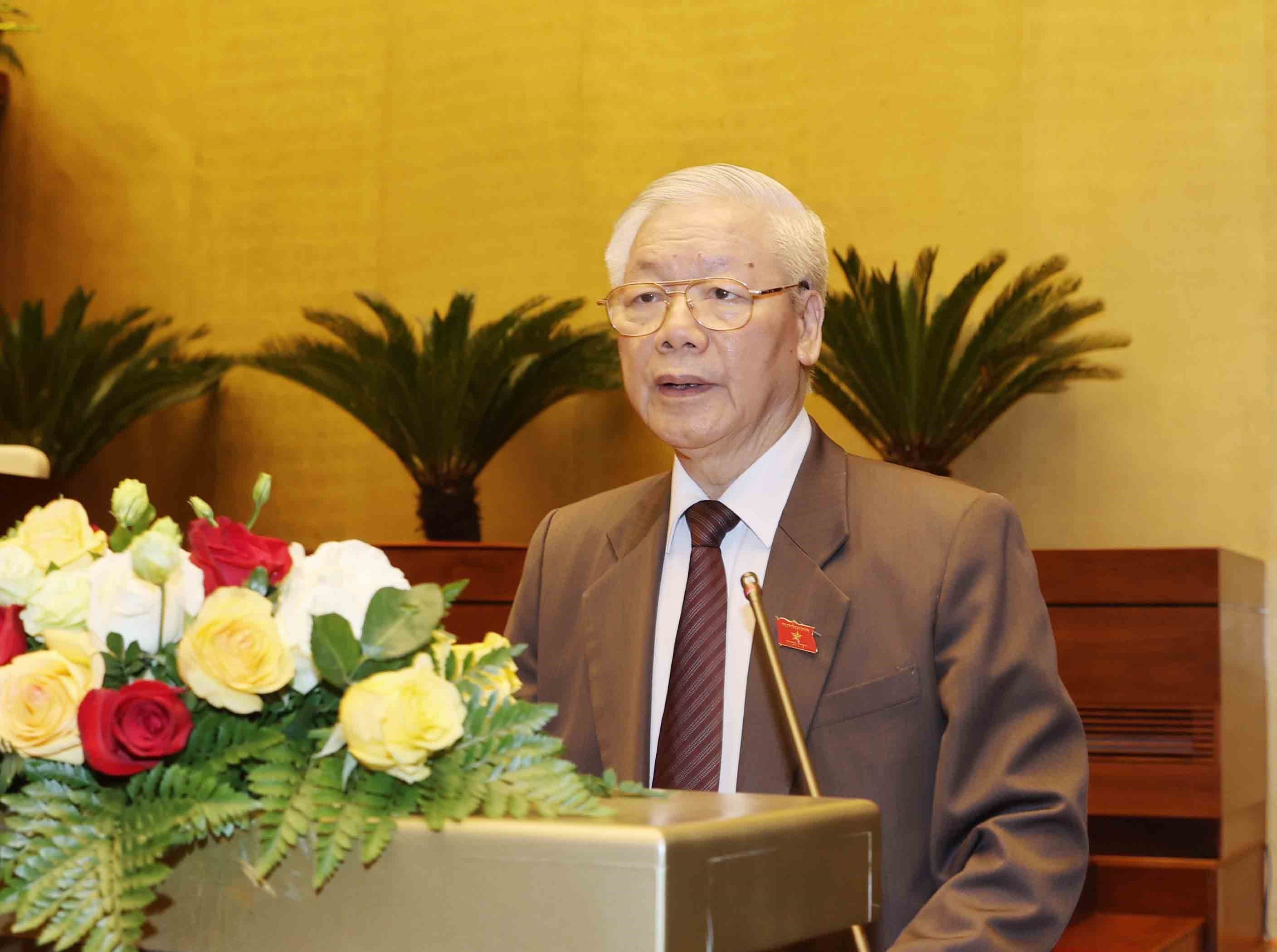 TCCS - Ngày 1-4-2021, tiếp tục chương trình làm việc của kỳ họp thứ 11 Quốc hội khóa XIV, Quốc hội tiến hành biểu quyết thông qua Nghị quyết bầu một số Phó Chủ tịch Quốc hội, thảo luận về Báo cáo Kiểm toán Nhà nước nhiệm kỳ 2016 - 2020. Trong phiên họp buổi chiều, Tổng Bí thư, Chủ tịch nước Nguyễn Phú Trọng trình Quốc hội miễn nhiệm Thủ tướng Chính phủ.