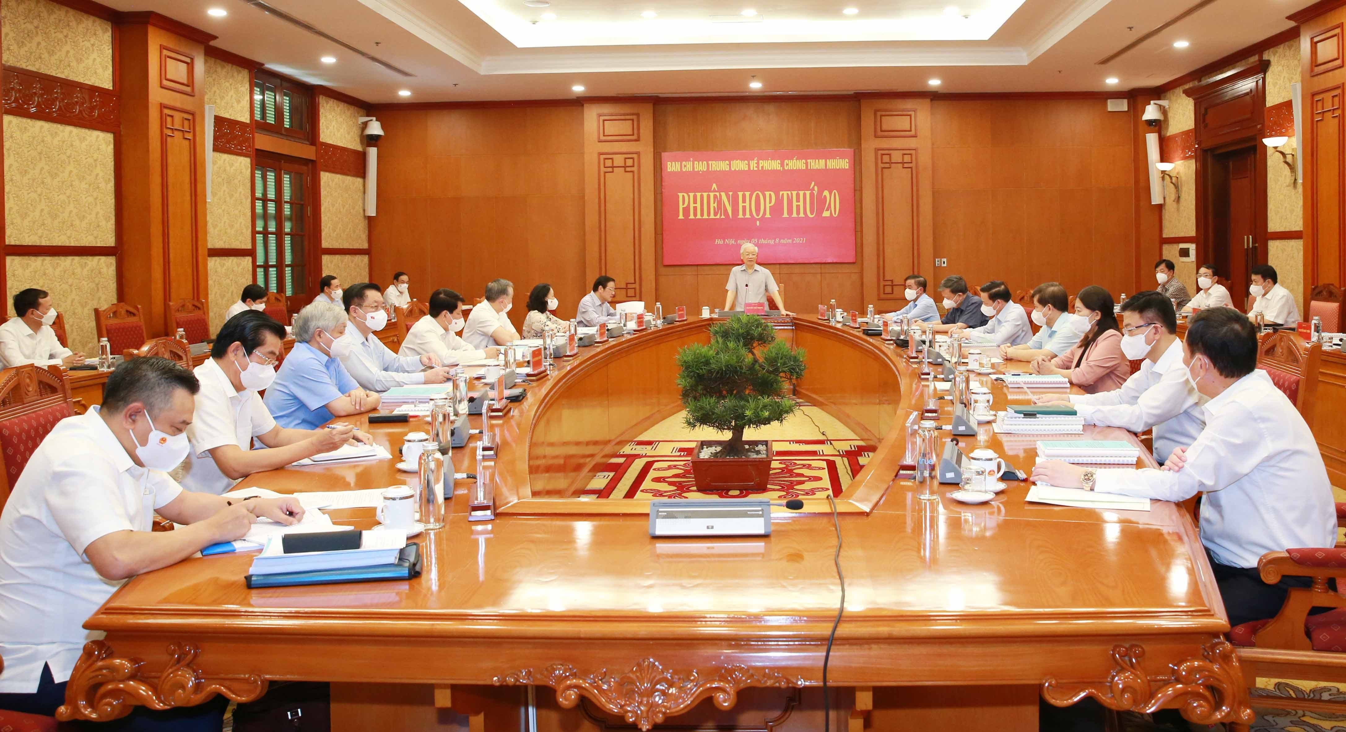 TCCS - Ngày 5-8-2021, tại Hà Nội, Ban Chỉ đạo Trung ương về phòng, chống tham nhũng đã họp Phiên thứ 20, đánh giá tình hình, kết quả công tác 6 tháng đầu năm 2021, xác định nhiệm vụ trọng tâm 6 tháng cuối năm 2021 và xem xét quyết định một số vấn đề quan trọng khác thuộc thẩm quyền của Ban Chỉ đạo.