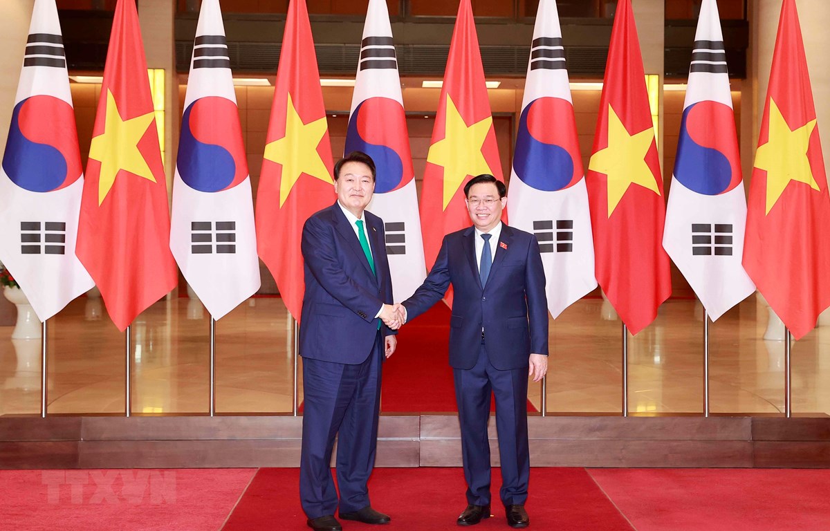 Tổng Bí thư Nguyễn Phú Trọng nhắc lại những kỷ niệm tốt đẹp trong chuyến thăm Hàn Quốc trước đây; trân trọng cảm ơn sự giúp đỡ, hỗ trợ quý báu của Hàn Quốc trong những năm qua. Tổng Bí thư nhấn mạnh, quan hệ hai nước đã được thử thách qua thời gian và triển vọng sẽ ngày càng phát triển tốt đẹp, vì lợi ích của nhân dân hai nước; đề nghị hai bên tăng cường nhiều hơn các chuyến thăm, hợp tác giúp đỡ lẫn nhau. Chủ tịch Quốc hội Vương Đình Huệ cho rằng, cùng với chuyến thăm chính thức Việt Nam rất thành công của Chủ tịch Quốc hội Hàn Quốc Kim Jin Pyo vào tháng 1-2023, chuyến thăm của Tổng thống Yoon Suk Yeol diễn ra ngay sau khi hai nước nâng cấp quan hệ lên đối tác chiến lược toàn diện và là chuyến thăm đầu tiên tới khu vực Đông Nam Á, thể hiện sự coi trọng của Chính phủ và cá nhân Tổng thống đối với quan hệ hai nước. Thủ tướng Chính phủ Phạm Minh Chính khẳng định, Việt Nam nhất quán coi trọng quan hệ với Hàn Quốc, mong muốn cùng Hàn Quốc đưa khuôn khổ quan hệ mới giữa hai nước phát triển với tầm nhìn xa hơn và mục tiêu cao hơn.