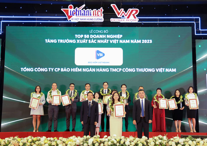 Bên cạnh giải thưởng Top 50 doanh nghiệp tăng trưởng xuất sắc nhất năm 2023, VBI vinh dự nhận nhiều giải thưởng uy tín khác như: Top 500 Doanh nghiệp tăng trưởng nhanh nhất Việt Nam (FAST500), Top 500 Doanh nghiệp lợi nhuận tốt nhất Việt Nam (PROFIT500), Top 10 Doanh nghiệp bảo hiểm phi nhân thọ uy tín nhất Việt Nam, Giải thưởng Sao vàng Đất Việt, Giải thưởng thương hiệu số 1, Giải thưởng Top Công nghiệp 4.0 Việt Nam, Top 1000 Doanh nghiệp nộp thuế lớn nhất Việt Nam.