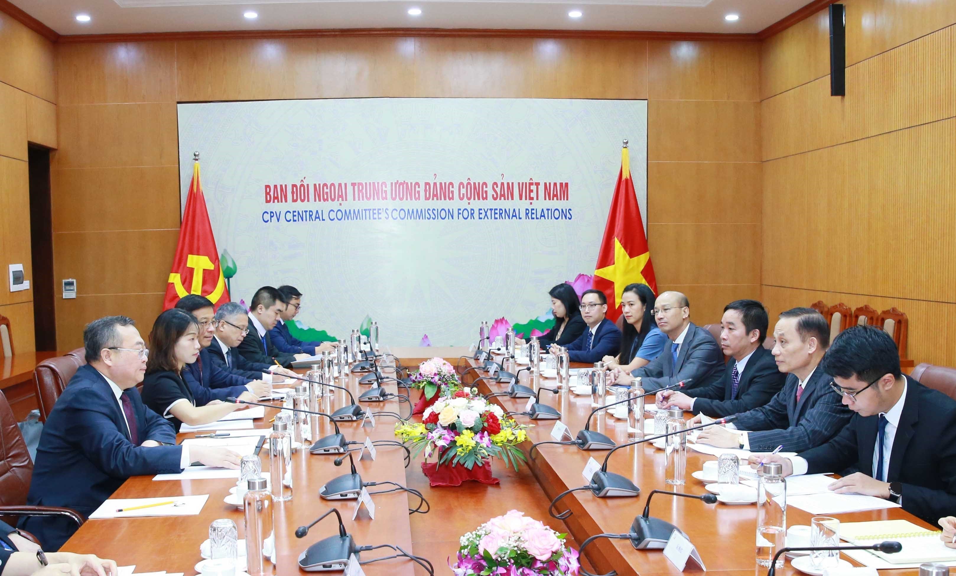 Tổng Bí thư Nguyễn Phú Trọng ghi nhận và đề nghị hai Ban Đối ngoại Trung ương tiếp tục phối hợp chặt chẽ, phát huy hiệu quả cơ chế gặp gỡ thường niên giữa hai Trưởng Ban Đối ngoại Trung ương, thúc đẩy hợp tác giữa các cơ quan tham mưu của hai Đảng, nâng cao vai trò định hướng chiến lược của quan hệ giữa hai Đảng đối với tổng thể quan hệ hai nước, thông qua các hành động thực tế cụ thể hóa Tuyên bố chung đạt được trong chuyến thăm chính thức Trung Quốc vừa qua, qua đó đưa quan hệ hợp tác hữu nghị truyền thống giữa hai Đảng, hai nước lên tầm cao mới.