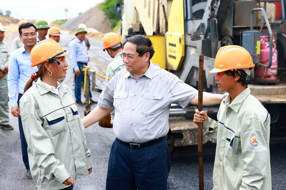 Khảo sát thực địa và tặng quà các đơn vị thi công dự án tuyến đường Đông- Tây, tỉnh Ninh Bình (giai đoạn I), Thủ tướng Chính phủ nhấn mạnh, đây là dự án giao thông kết nối liên vùng lớn nhất từ trước đến nay của tỉnh Ninh Bình, có ý nghĩa quan trọng, kết nối giữa các tuyến cao tốc, quốc lộ, đường tỉnh, các khu du lịch, khu công nghiệp, cụm công nghiệp của tỉnh và khu cực; kết nối miền núi với ven biển; đồng thời tạo không gian phát triển mới, góp phần phát triển kinh tế - xã hội, nâng cao đời sống nhân dân.