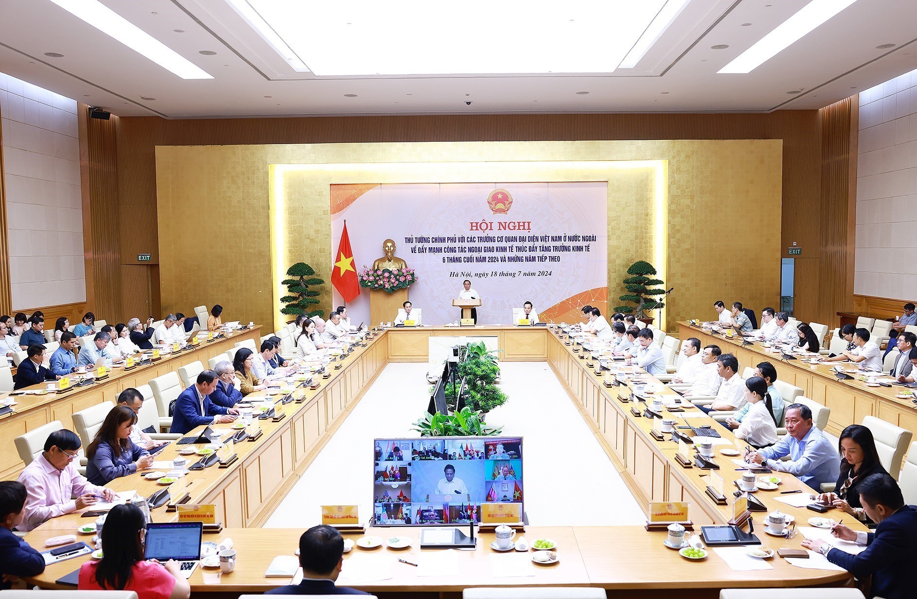 TCCS - Ngày 18-7-2024, Ủy viên Bộ Chính trị, Thủ tướng Chính phủ Phạm Minh Chính chủ trì Hội nghị Thủ tướng Chính phủ với các trưởng cơ quan đại diện Việt Nam ở nước ngoài về đẩy mạnh công tác ngoại giao kinh tế thúc đẩy tăng trưởng kinh tế 6 tháng cuối năm 2024 và những năm tiếp theo.