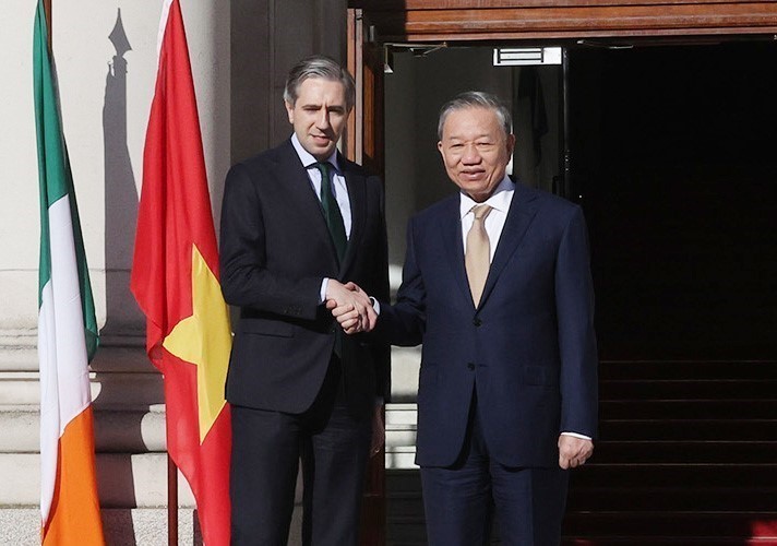 Tổng Bí thư, Chủ tịch nước Tô Lâm cảm ơn sự đón tiếp trọng thị và chu đáo mà Nhà nước, Chính phủ và nhân dân Ireland dành cho đoàn, khẳng định Việt Nam luôn coi trọng và mong muốn tăng cường quan hệ hữu nghị, hợp tác nhiều mặt với Ireland.
