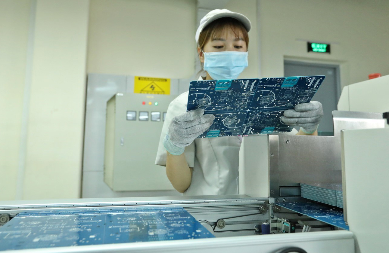 Dây chuyền sản xuất sản phẩm thiết bị đầu cuối của VNPT Technology - đơn vị chủ lực của Tập đoàn Bưu chính Viễn thông Việt Nam trong lĩnh vực sản xuất viễn thông, công nghệ thông tin, truyền thông và công nghiệp nội dung số_Ảnh: TTXVN