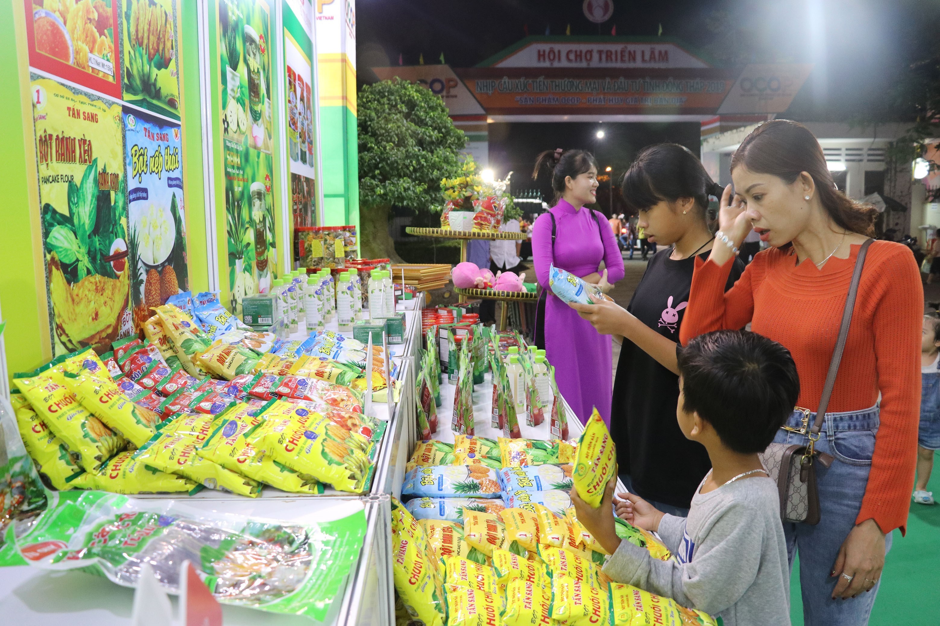 Các sản phẩm OCOP trưng bày tại Hội chợ triển lãm Nhịp cầu xúc tiến thương mại và đầu tư tỉnh Đồng Tháp, với chủ đề “Sản phẩm OCOP - phát huy giá trị bản địa”_Ảnh: TTXVN