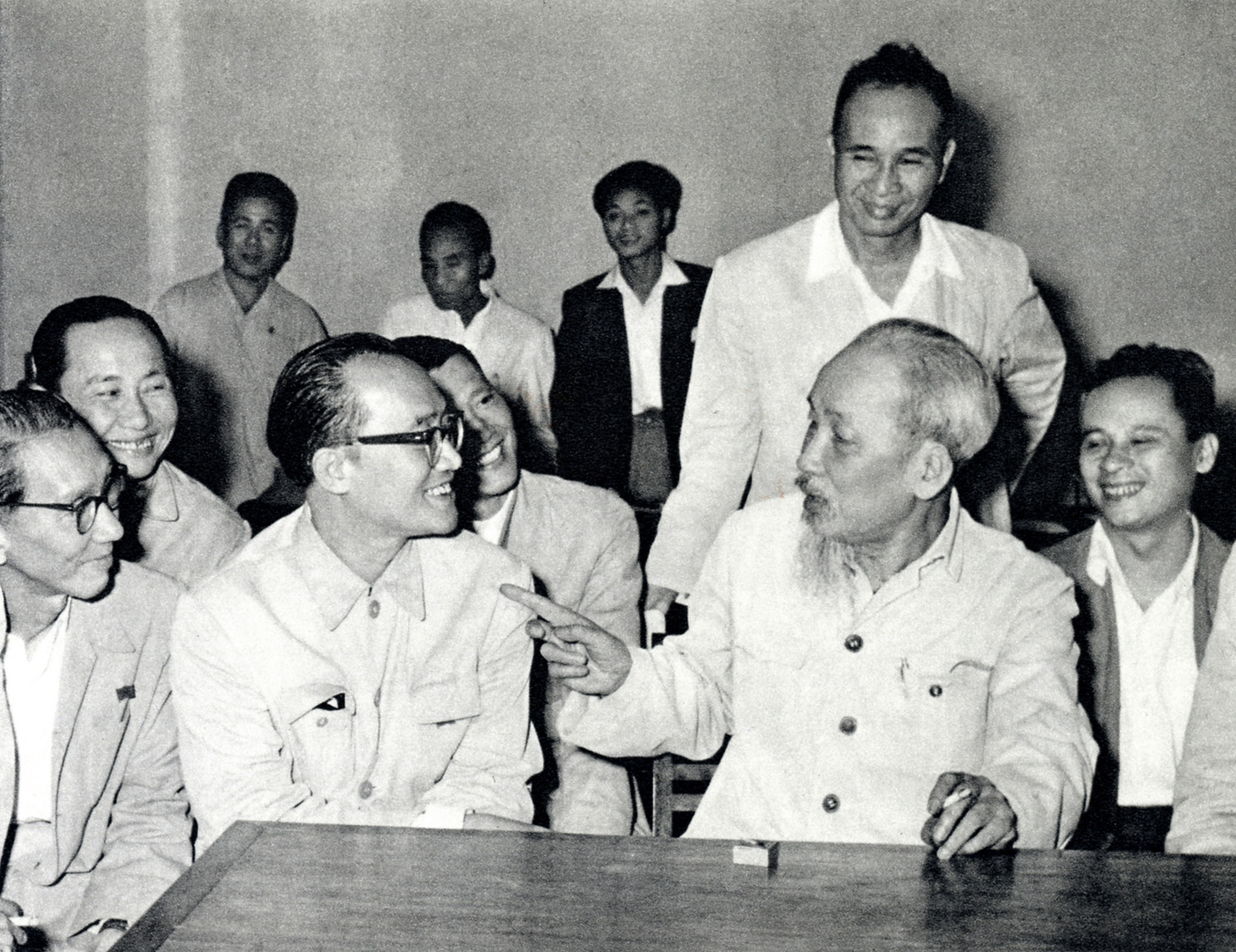 Chủ tịch Hồ Chí Minh nói chuyện thân mật với các đại biểu trí thức dự Hội nghị chính trị đặc biệt (tháng 3-1964)_Nguồn: TTXVN