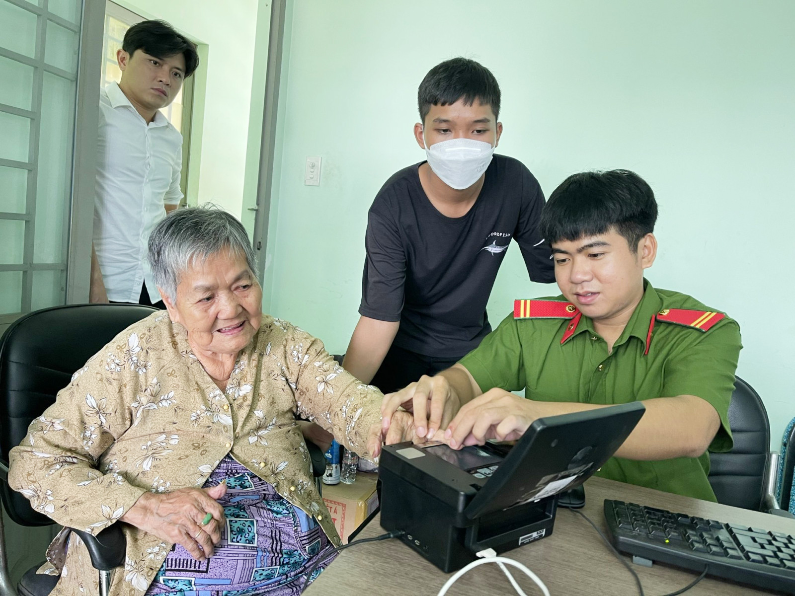 Cán bộ, chiến sĩ công an phường Hiệp An, tỉnh Bình Dương hỗ trợ nhân dân làm căn cước công dân gắn chíp_Nguồn: baobinhduong.vn