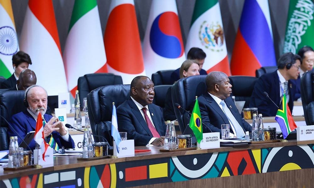 Tổng thống Cộng hòa Nam Phi, Chủ tịch G20 năm 2025, Matamela Cyril Ramaphosa phát biểu tại Hội nghị Thượng đỉnh Nhóm các nền kinh tế phát triển và mới nổi hàng đầu thế giới (G20) lần thứ 20, ngày 21-11-2025_Ảnh: TTXVN