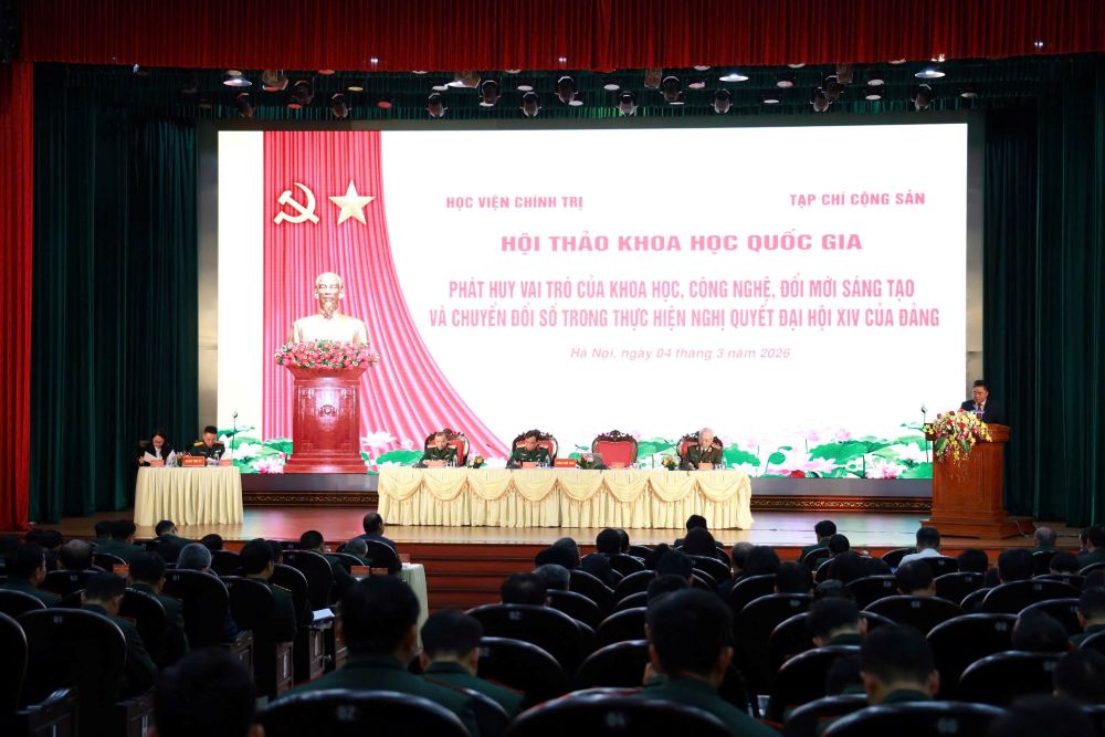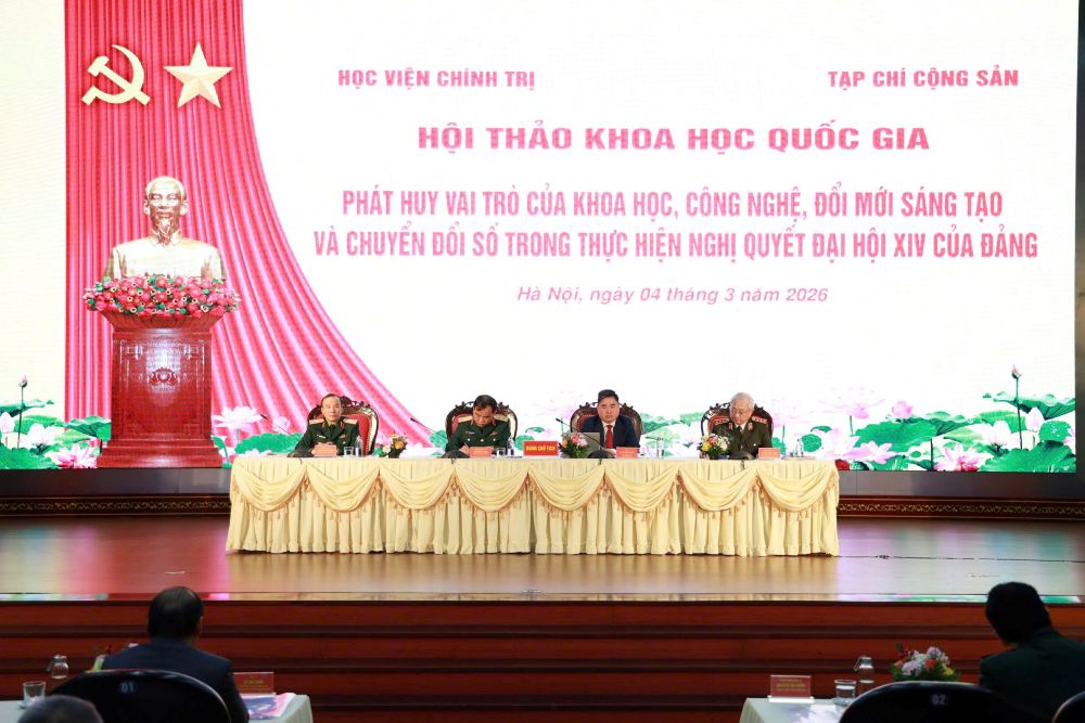 TCCS - Ngày 4-3-2026, Tạp chí Cộng sản phối hợp với Học viện Chính trị (Bộ Quốc phòng) tổ chức Hội thảo: “Phát huy vai trò của khoa học, công nghệ, đổi mới sáng tạo và chuyển đổi số trong thực hiện Nghị quyết Đại hội XIV của Đảng”. Hội thảo là hoạt động thiết thực nhằm tuyên truyền, quán triệt Chỉ thị số 01-CT/TW, ngày 23-1-2026, của Bộ Chính trị, về nghiên cứu, học tập, quán triệt và triển khai thực hiện Nghị quyết Đại hội XIV của Đảng, qua đó góp phần sớm đưa Nghị quyết vào cuộc sống.