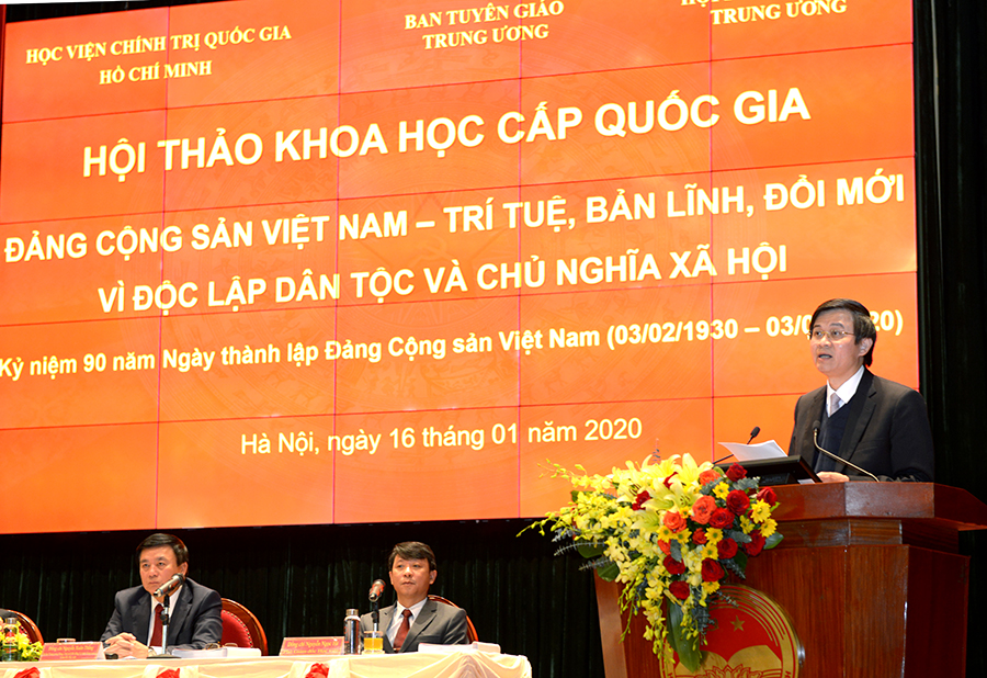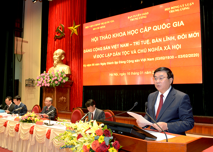 TCCS - Ngày 16-1-2020, tại Hà Nội, Ban Tuyên giáo Trung ương, Học viện Chính trị quốc gia Hồ Chí Minh, Hội đồng Lý luận Trung ương tổ chức Hội thảo cấp quốc gia: “Đảng Cộng sản Việt Nam - Trí tuệ, bản lĩnh, đổi mới vì độc lập dân tộc và chủ nghĩa xã hội” bằng hình thức trực tuyến toàn quốc.