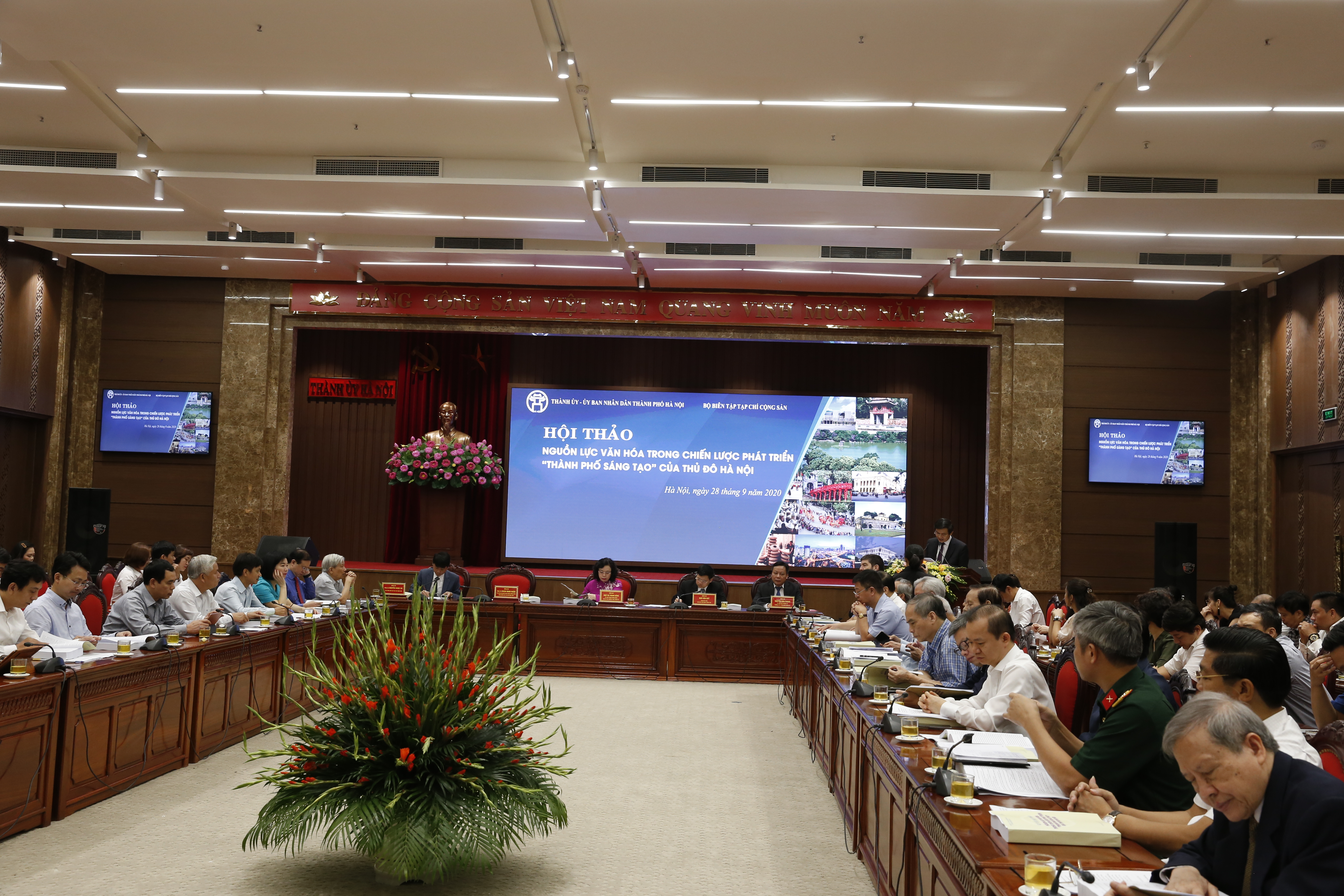 Phát biểu Đề dẫn Hội thảo, PGS, TS. Đoàn Minh Huấn, Ủy viên dự khuyết Ban Chấp hành Trung ương Đảng, Tổng Biên tập, Bí thư Đảng ủy Tạp chí Cộng sản khẳng định, sự hình thành nên cấu trúc, chức năng đô thị luôn in đậm dấu ấn của trí óc và bàn tay con người mà trước nhất là thông qua quy hoạch và kiến trúc không gian đô thị, tổ chức đô thị. Nói đến thành phố sáng tạo còn đòi hỏi cao hơn, tinh tế hơn để sáng tạo nên những không gian, chức năng hoàn toàn mới chưa có tiền lệ và thông lệ, mang sắc thái riêng có của mỗi đô thị, phản ánh cả triết lý, nghệ thuật, mỹ cảm và cả khả năng vốn hóa, thương phẩm hóa, dựa trên cơ sở ứng dụng thành tựu khoa học - công nghệ và đổi mới sáng tạo. Trong bối cảnh kinh tế thị trường, hội nhập quốc tế và Cách mạng công nghiệp lần thứ tư, khi phát triển kinh tế tri thức, kinh tế sáng tạo là hướng lựa chọn của nhiều quốc gia, văn hóa không chỉ được quan niệm là phúc lợi công cộng, là thụ hưởng thành quả của tăng trưởng kinh tế mà tham dự ngày càng sâu vào cơ cấu lại mô hình tăng trưởng, là nguồn lực đầu vào được chuyển hóa vào sản xuất vật chất, được thương phẩm hóa trên thị trường, chi phối đến đầu ra khi nâng cao giá trị trao đổi, giá trị tiêu dùng của con người có xu hướng ngày càng coi trọng hơn thụ hưởng giá trị văn hóa. Và với Thủ đô Hà Nội, nguồn lực cốt lõi cho phát triển thành phố sáng tạo chính là nguồn lực văn hóa, con người gắn với vị trí địa lý, bản sắc của Thăng Long - Hà Nội.