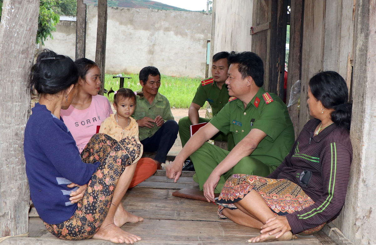 Công an xã Pờ Y, huyện Ngọc Hồi, tỉnh Kon Tum vận động, tuyên truyền cho người dân làng Đăk Mế về tác hại của ma túy_Ảnh: TTXVN