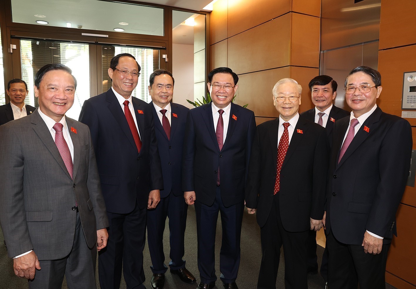 Tổng Bí thư Nguyễn Phú Trọng cùng các đồng chí lãnh đạo Đảng và Nhà nước đến dự phiên bế mạc Kỳ họp thứ 6, Quốc hội khóa XV _Ảnh: TTXVN