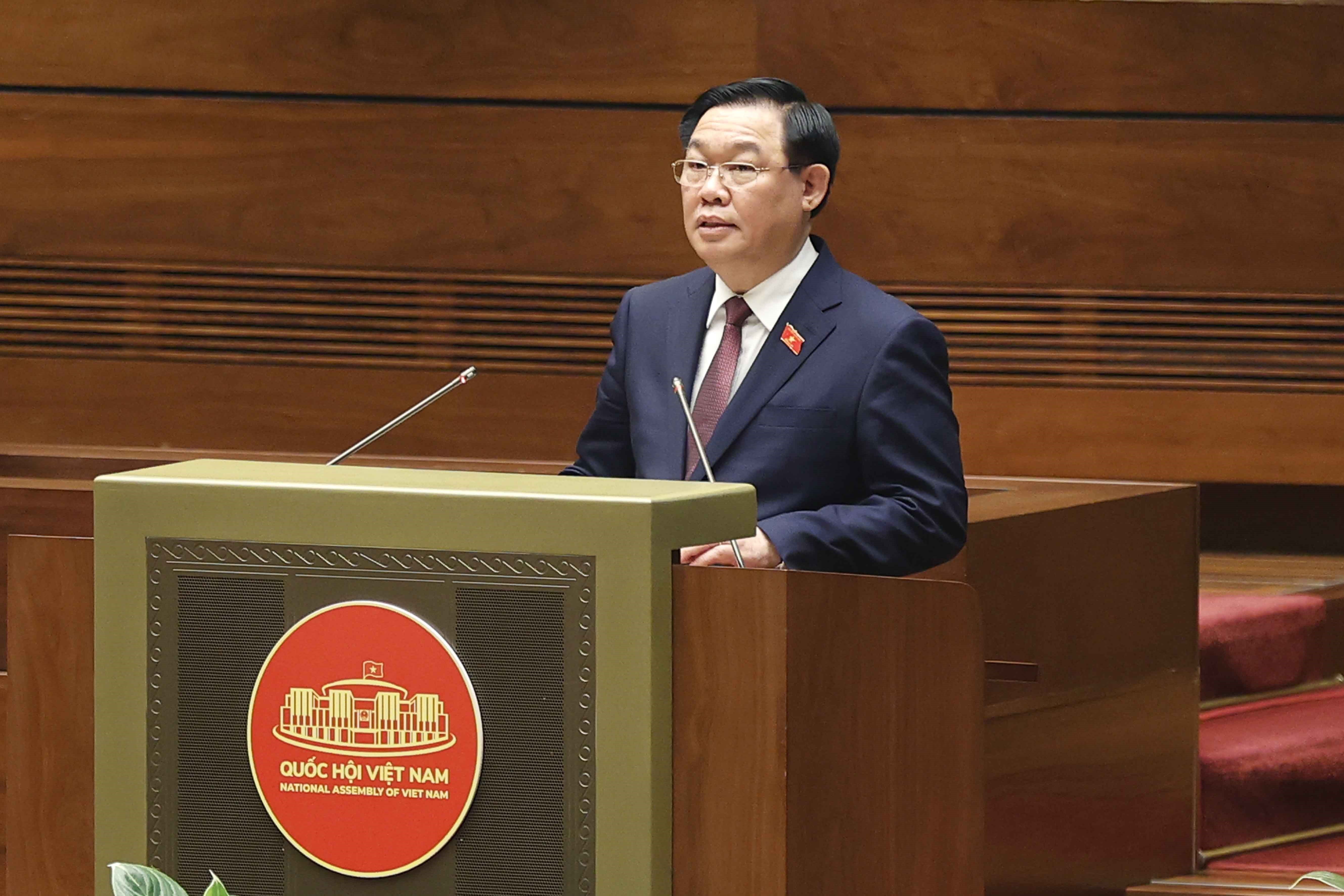 Ủy viên Bộ Chính trị, Chủ tịch Quốc hội Vương Đình Huệ phát biểu bế mạc kỳ họp _Ảnh: TTXVN
