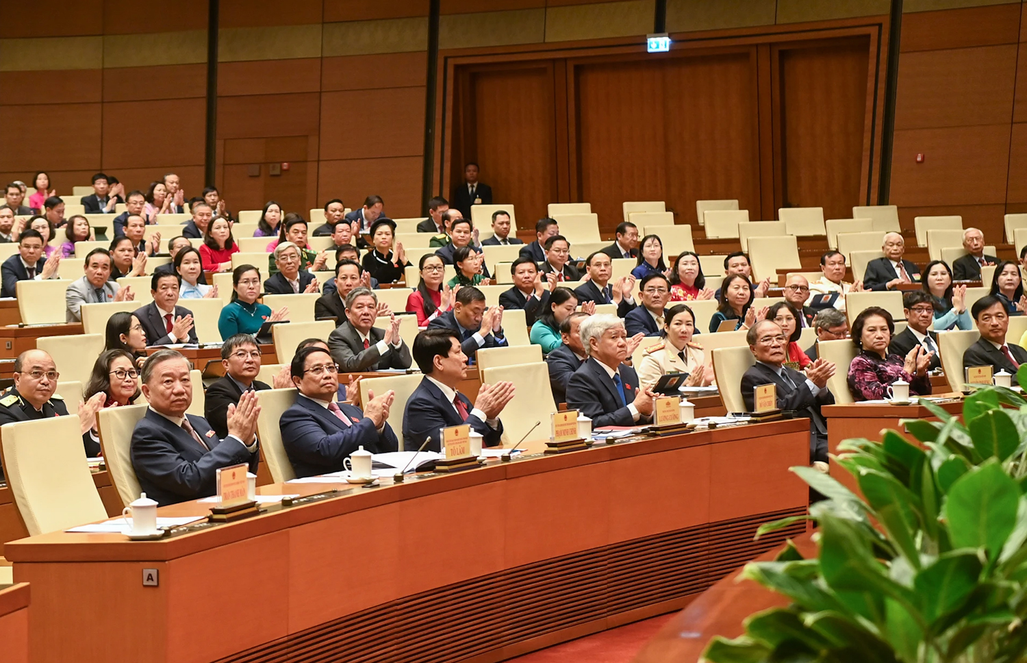Thế giới đang trong thời kỳ thay đổi có tính thời đại, đất nước đang đứng trước cánh cửa lịch sử để bước vào kỷ nguyên mới, kỷ nguyên vươn mình của dân tộc. Thực tiễn nóng bỏng của đất nước đang đặt ra những vấn đề cấp cách cần giải quyết. Nhân dân đang mong chờ và kỳ vọng vào những quyết sách của Đảng, Nhà nước và Quốc hội. Tôi đề nghị Quốc hội, các cơ quan của Quốc hội, các vị đại biểu Quốc hội phát huy tinh thần đoàn kết, trách nhiệm, đổi mới, bứt phá hoàn thành xuất sắc trọng trách của mình, góp phần cùng toàn Đảng, toàn dân, toàn quân ta đoàn kết phấn đấu, sớm xây dựng thành công nước Việt Nam xã hội chủ nghĩa, sánh vai với các cường quốc năm châu như tâm nguyện của Chủ tịch Hồ Chí Minh vĩ đại và ước vọng của toàn dân tộc.