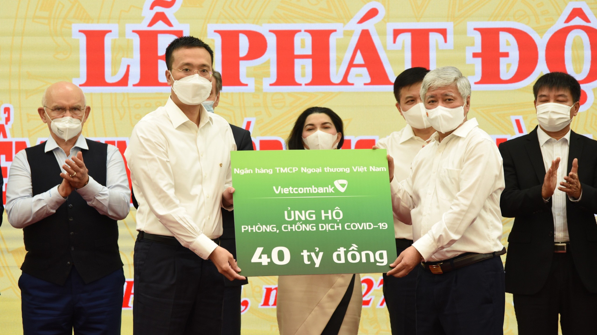 Trước sự chứng kiến của Chủ tịch nước, đồng chí Phạm Quang Dũng, Tổng Giám đốc Vietcombank đã trao ủng hộ số tiền 40 tỷ cho các hoạt động phòng, chống dịch COVID-19. Lãnh đạo Vietcombank cho biết, kể từ khi đại dịch COVID-19 khởi phát đến nay, Vietcombank luôn là ngân hàng tiên phong triển khai đồng bộ các giải pháp hỗ trợ, đồng hành cùng doanh nghiệp, cá nhân do tác động của COVID-19 và thiên tai thông qua các gói hỗ trợ lãi suất với trên 3.700 tỷ đồng chia sẻ lợi nhuận, đồng thời Vietcombank đã thực hiện ủng hộ công tác phòng, chống dịch COVID-19 với số tiền gần 150 tỷ đồng, nỗ lực góp phần cùng Chính phủ đẩy lùi dịch bệnh, ổn đinh dân sinh.