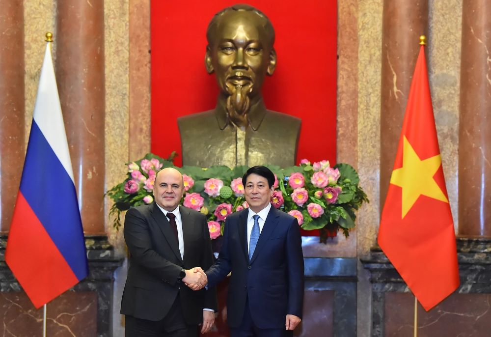Chủ tịch nước Lương Cường bày tỏ vui mừng và đánh giá cao ý nghĩa chuyến thăm Việt Nam lần đầu tiên của Thủ tướng Chính phủ Nga Mikhail Mishustin, nhấn mạnh đây là hoạt động khởi đầu cho năm hai nước kỷ niệm 75 năm thiết lập quan hệ ngoại giao, mở ra trang mới cho hợp tác song phương, tạo động lực thúc đẩy hơn nữa quan hệ Đối tác chiến lược toàn diện giữa hai nước.