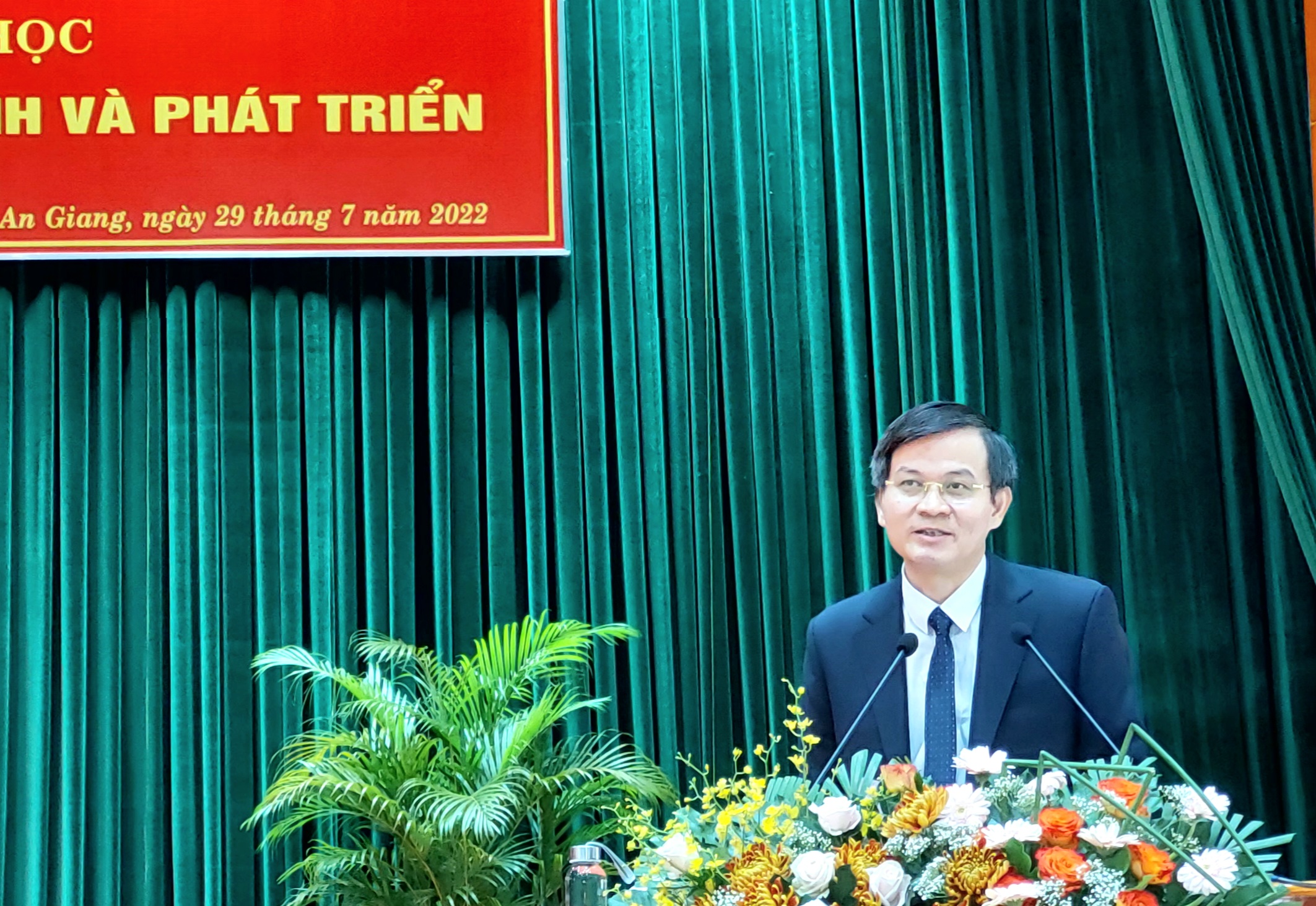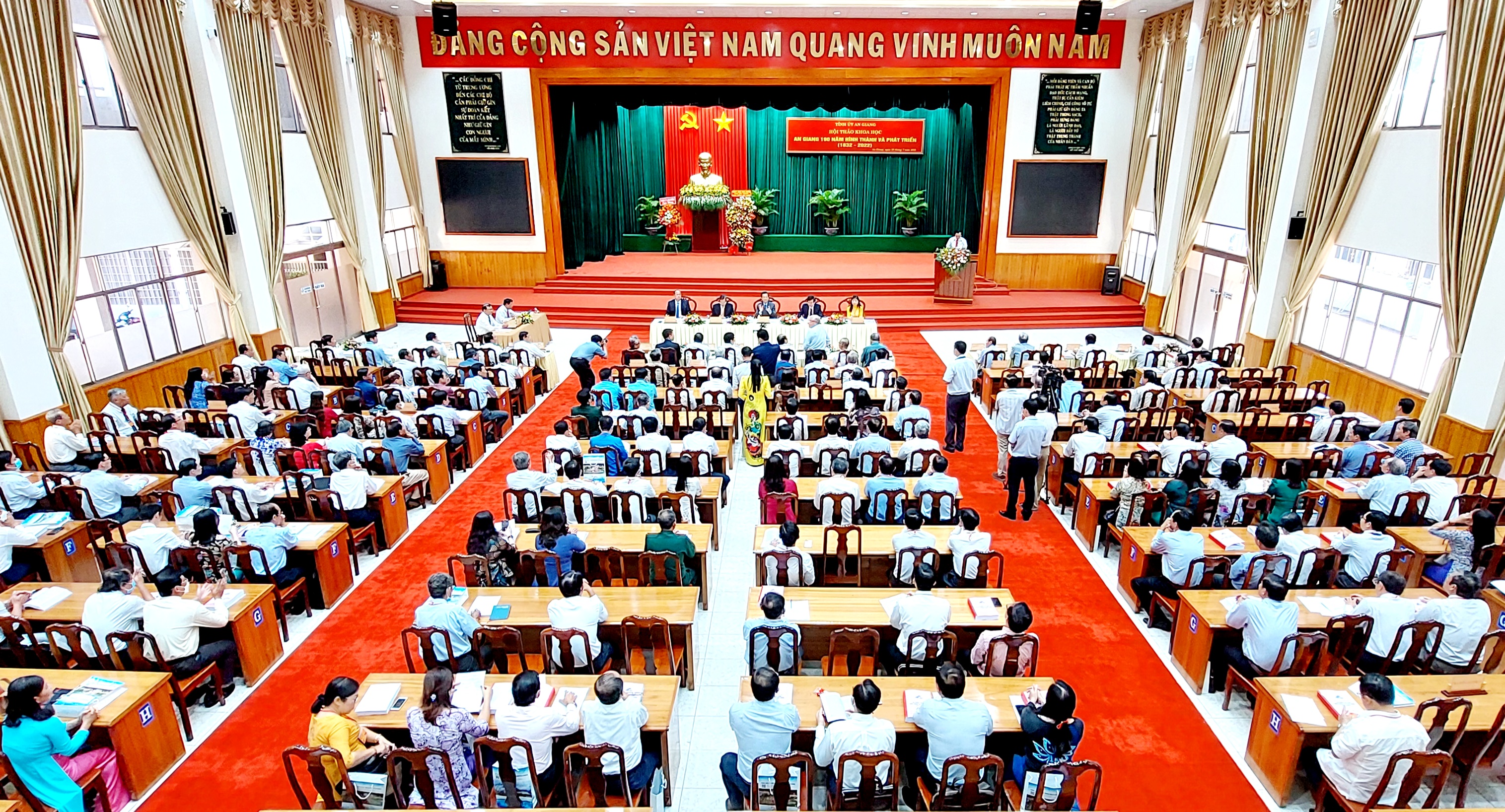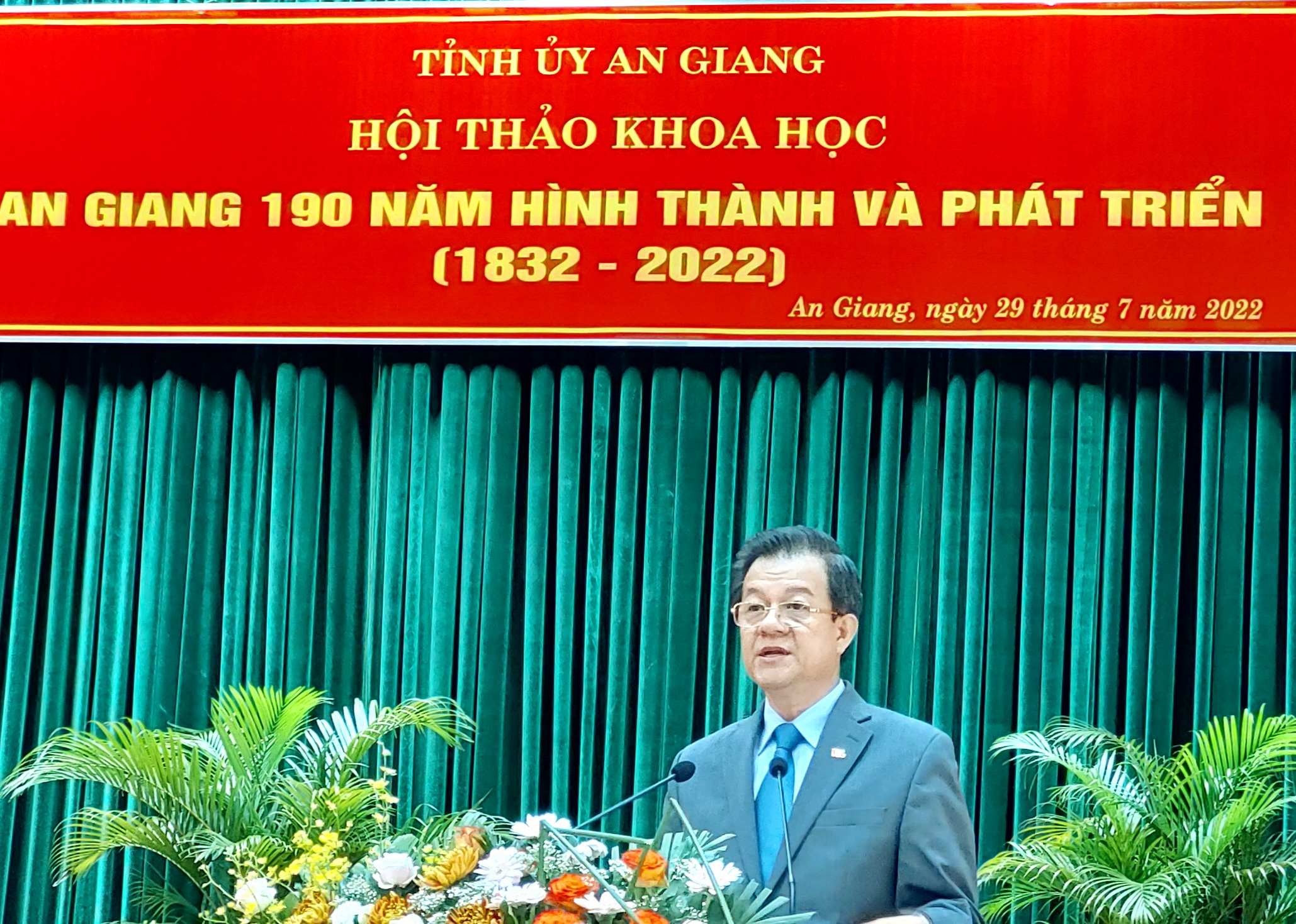 TCCS - Ngày 29-7-2022, tại thành phố Long Xuyên, tỉnh An Giang, Tỉnh ủy An Giang tổ chức trọng thể Hội thảo khoa học “An Giang 190 năm hình thành và phát triển (1832 - 2022)”. Các đồng chí: TS. Lê Hồng Quang, Ủy viên Trung ương Đảng, Bí thư Tỉnh ủy An Giang; PGS, TS. Đoàn Minh Huấn, Ủy viên Trung ương Đảng, Tổng Biên tập Tạp chí Cộng sản; Lê Văn Nưng, Phó Bí thư thường trực Tỉnh ủy, Chủ tịch Hội đồng nhân dân tỉnh An Giang; TS. Nguyễn Thanh Bình, Phó Bí thư Tỉnh ủy, Chủ tịch Ủy ban nhân dân tỉnh An Giang; Trần Thị Thanh Hương, Ủy viên Ban Thường vụ Tỉnh ủy, Trưởng Ban Tuyên giáo Tỉnh ủy, Trưởng Đoàn Đại biểu Quốc hội tỉnh An Giang chủ trì hội thảo.