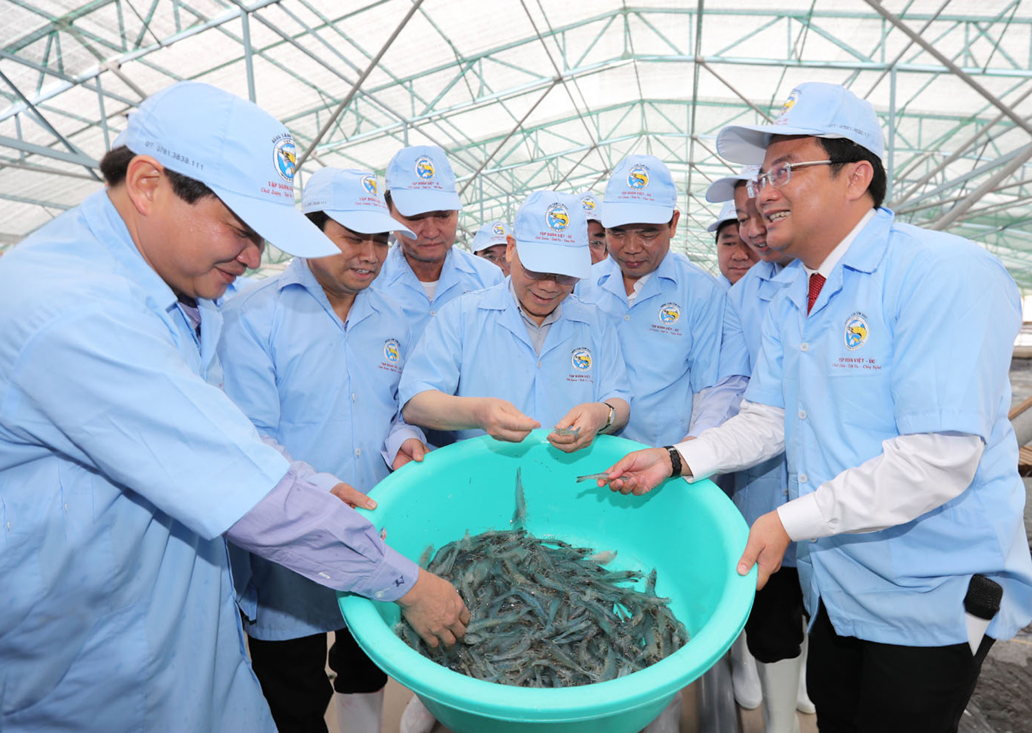 Tổng Bí thư Nguyễn Phú Trọng thăm mô hình nuôi tôm siêu thâm canh trong khu nhà kính của Công ty cổ phần Việt - Úc Bạc Liêu ở xã Vĩnh Thịnh, huyện Hòa Bình, tỉnh Bạc Liêu _Ảnh: Tư liệu