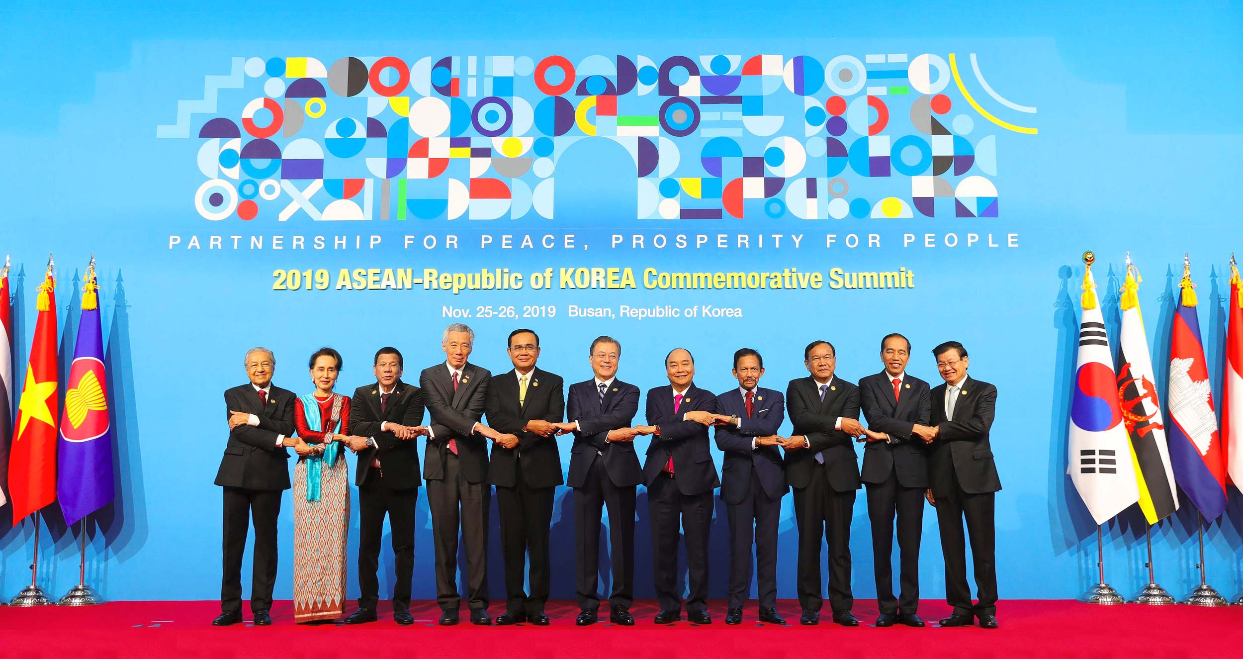 Ủy viên Bộ Chính trị, Thủ tướng Chính phủ Nguyễn Xuân Phúc cùng lãnh đạo các nước tham dự Hội nghị cấp cao kỷ niệm 30 năm quan hệ đối thoại ASEAN - Hàn Quốc tổ chức tại Busan (Hàn Quốc), ngày 26-11-2019 _Ảnh: Tư liệu