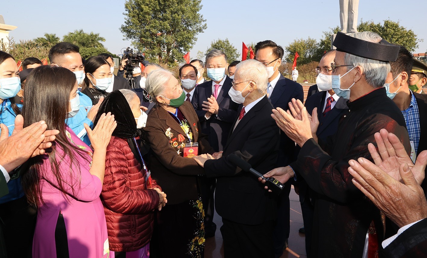 Đồng chí Đỗ Văn Chiến, Bí thư Trung ương Đảng, Chủ tịch Ủy ban Trung ương Mặt trận Tổ quốc Việt Nam cùng lãnh đạo tỉnh Nghệ An đến thăm, chúc mừng lễ Giáng sinh năm 2021 tại Toà Giám mục Giáo phận Vinh _Ảnh: TTXVN
