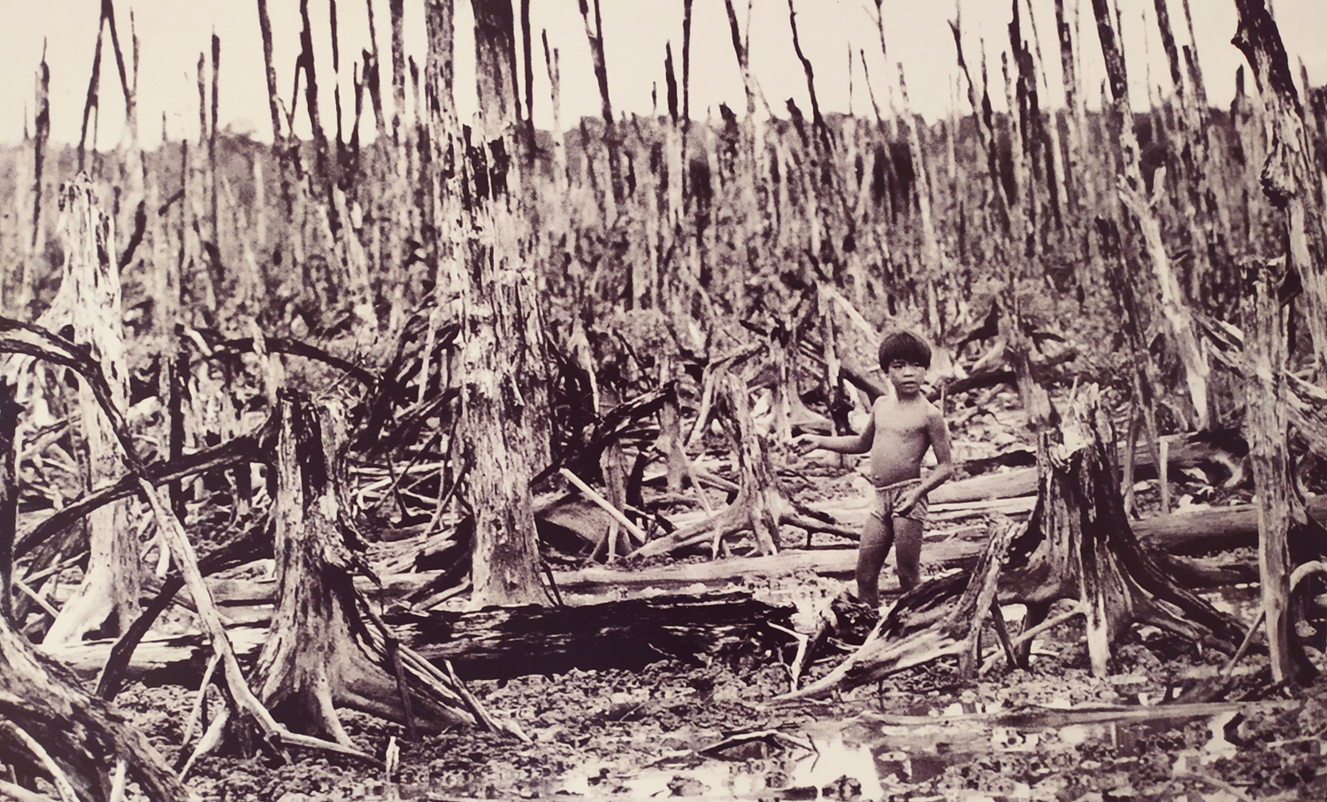 Hậu quả nặng nề đối với con người và môi trường do thảm họa của chất độc da cam/đi-ô-xin do quân đội Mỹ rải xuống Việt Nam (Trong ảnh: Rừng đước Cà Mau bị hủy diệt do chất độc da cam/đi-ô-xin, năm 1976) _Nguồn: hnncddc.camau.gov.vn