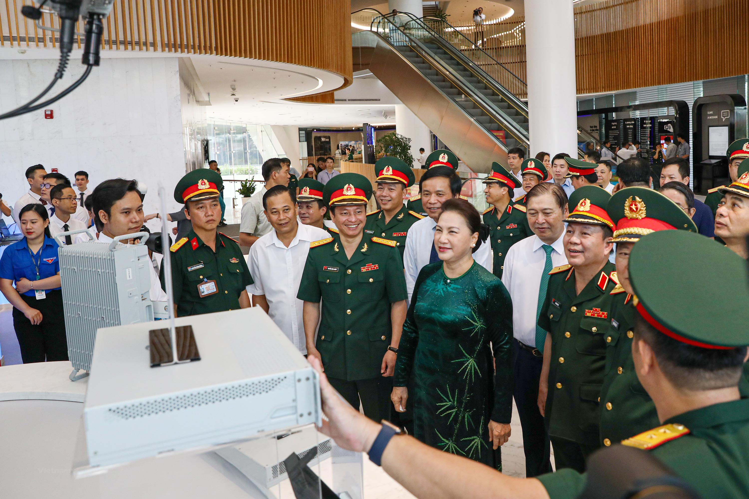 Cần xây dựng, hoàn thiện cơ sở pháp lý cho việc hình thành, sở hữu, quản lý, phân phối các loại tài sản vô hình và tài sản hình thành trong tương lai làm nguồn lực cho sự phát triển nhanh và bền vững đất nước (Trong ảnh: Ủy viên Bộ Chính trị, Chủ tịch Quốc Hội Nguyễn Thị Kim Ngân tham quan các sản phẩm công nghệ của Tập đoàn Công nghiệp - Viễn thông Quân đội) _Nguồn: vietnamplus.vn