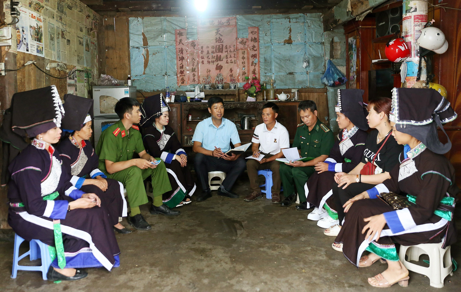 Cán bộ, đảng viên tuyên truyền chủ trương, đường lối của Đảng và Nhà nước về phát triển kinh tế cho đồng bào dân tộc thiểu số ở xã Tung Chung Phố, huyện Mường Khương, tỉnh Lào Cai _Ảnh: TTXVN