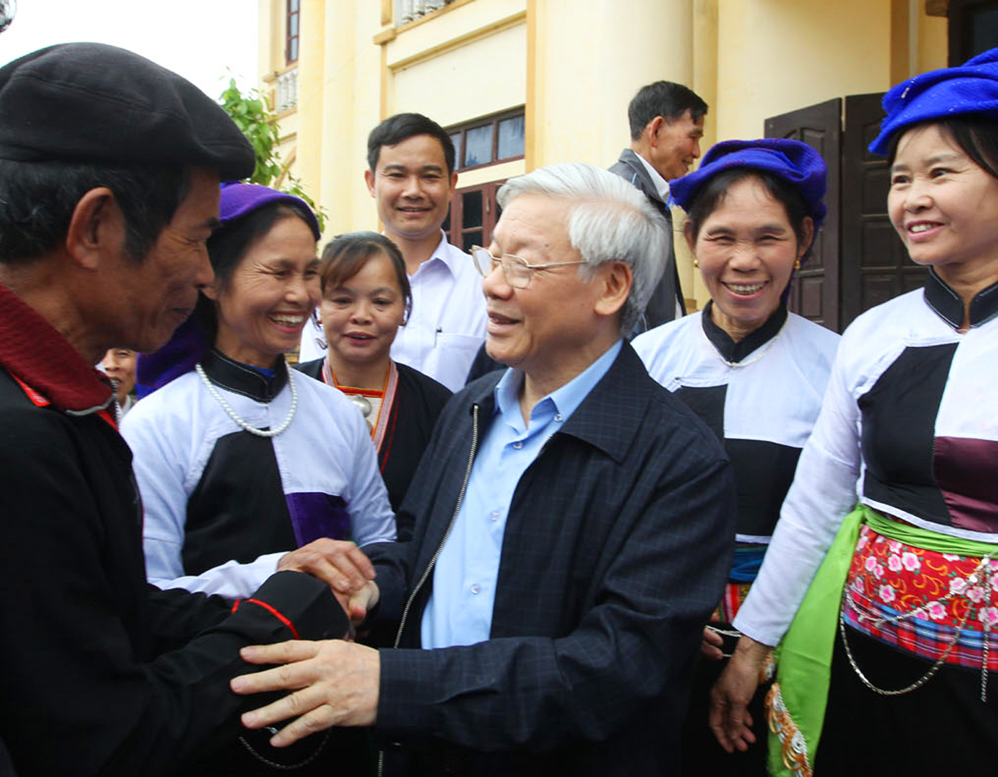 Tổng Bí thư Nguyễn Phú Trọng với cán bộ, nhân dân xã Võ Miếu, huyện Thanh Sơn, tỉnh Phú Thọ _Ảnh: TTXVN