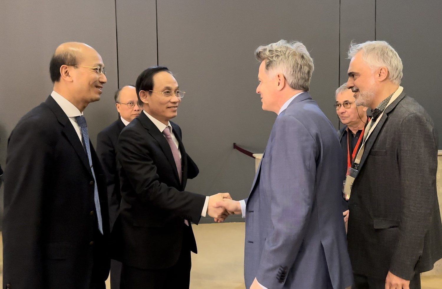 Đồng chí Fabien Roussel, Bí thư toàn quốc Đảng Cộng sản Pháp tiếp đồng chí Lê Hoài Trung, Ủy viên Trung ương Đảng, Trưởng Ban Đối ngoại Trung ương bên lề Đại hội Đảng Cộng sản Pháp lần thứ 39 tại Marseilles (Pháp), ngày 7-4-2023 _Ảnh: TTXVN