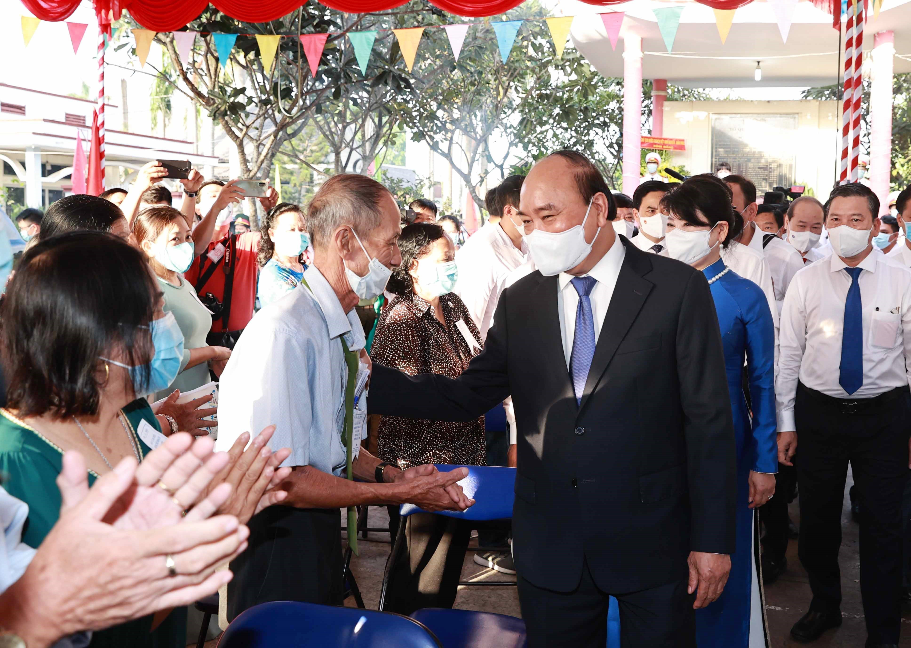 Xây dựng khối đại đoàn kết toàn dân tộc, nhằm phát huy sức mạnh nội sinh của cả dân tộc trong sự nghiệp xây dựng và bảo vệ Tổ quốc Việt Nam xã hội chủ nghĩa (Trong ảnh: Ủy viên Bộ Chính trị, Chủ tịch nước Nguyễn Xuân Phúc với nhân dân tại điểm bỏ phiếu bầu cử đại biểu Quốc hội khóa XV và hội đồng nhân dân các cấp nhiệm kỳ 2021 - 2026) _Ảnh: TTXVN