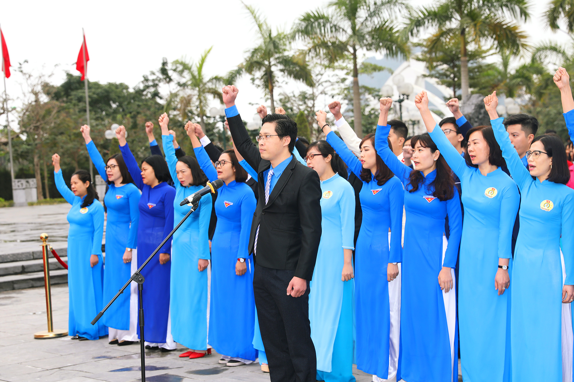 Không ngừng rèn luyện và bồi đắp bản lĩnh chính trị cho đội ngũ cán bộ, đảng viên, có năng lực tự đề kháng trước âm mưu "tác động chuyển hóa" của các thế lực thù địch (Trong ảnh: Đảng viên mới tuyên thệ dưới cờ Tổ quốc, cờ Đảng và chân dung Chủ tịch Hồ Chí Minh) _Ảnh: Tư liệu