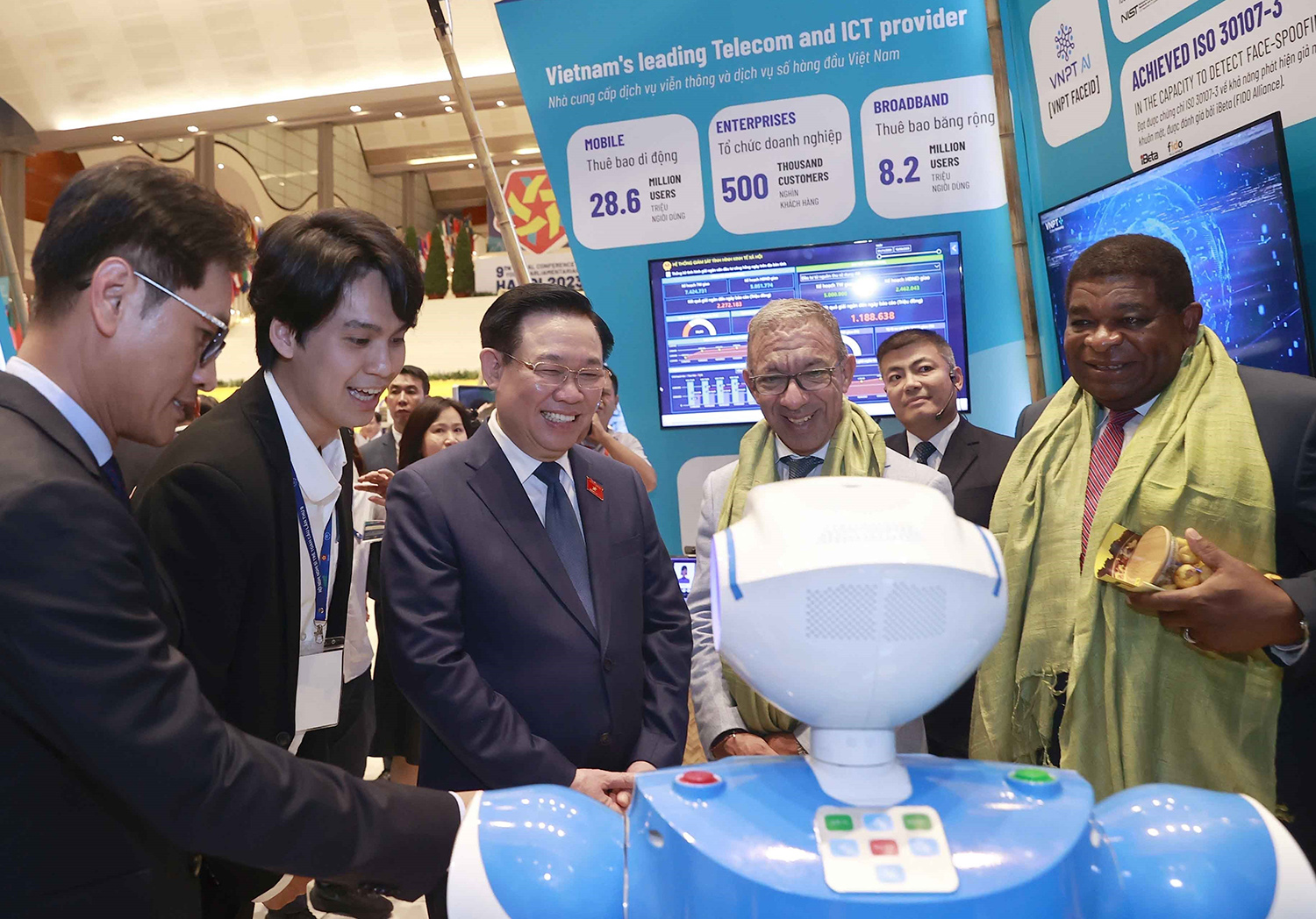 Ủy viên Bộ Chính trị, Chủ tịch Quốc hội Vương Đình Huệ dự khai mạc Triển lãm thành tựu đổi mới sáng tạo, sản phẩm OCOP với các đại biểu quốc tế tham dự Hội nghị Nghị sĩ trẻ toàn cầu lần thứ 9 _Ảnh: TTXVN