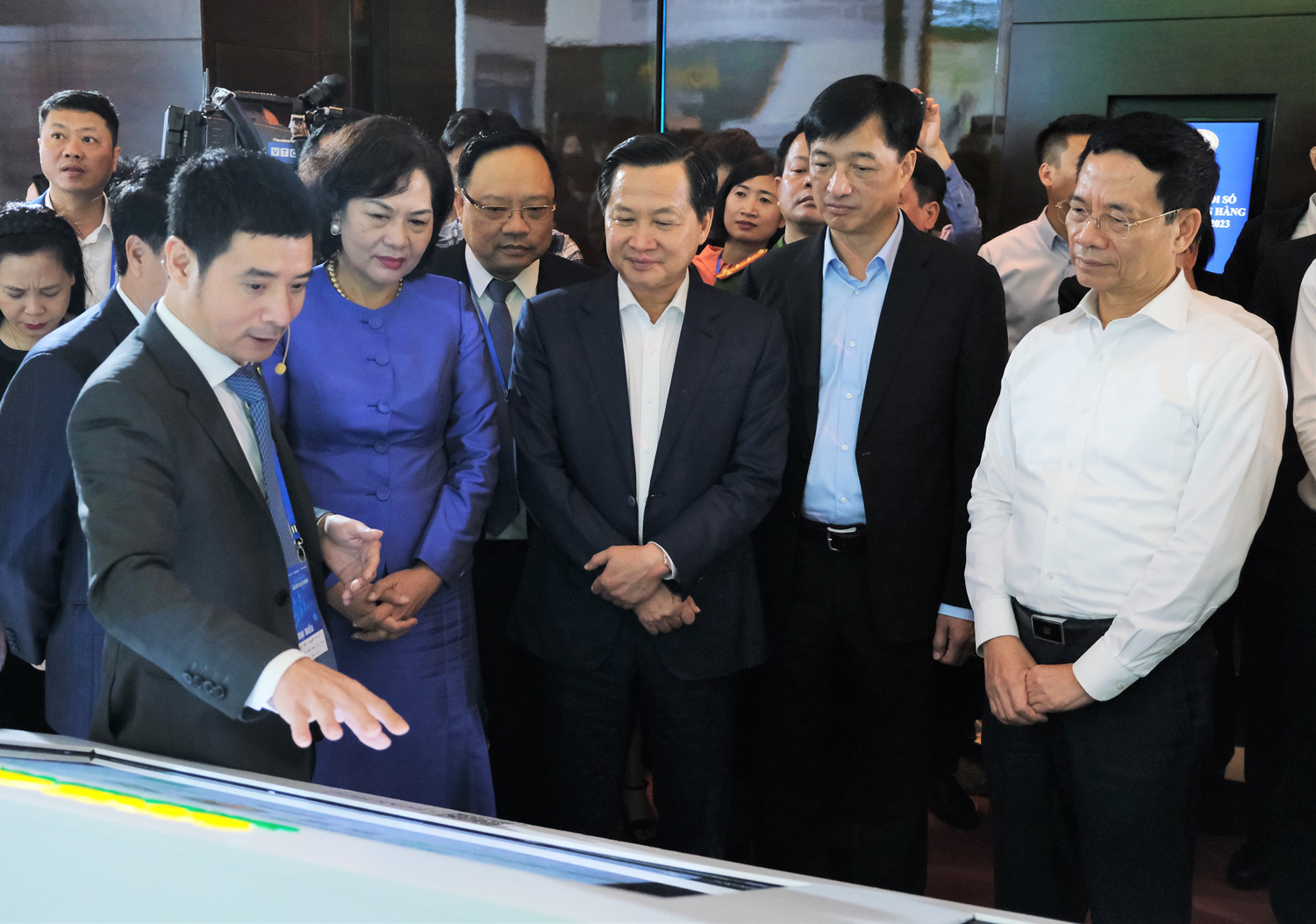 Bí thư Trung ương Đảng, Phó Thủ tướng Chính phủ Lê Minh Khái tham quan triển lãm tại sự kiện Chuyển đổi số ngành ngân hàng năm 2023 _Nguồn: thanhnien.vn
